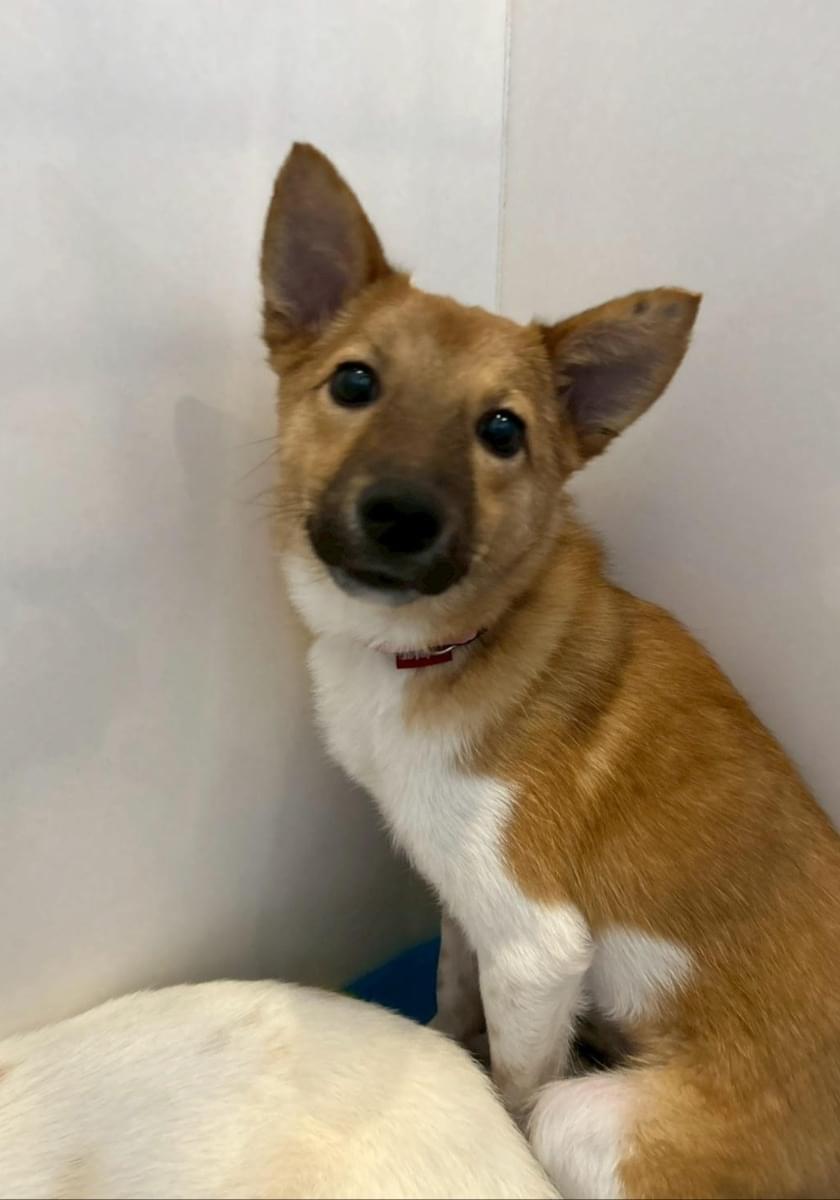 茶白の雑種犬を探しています。