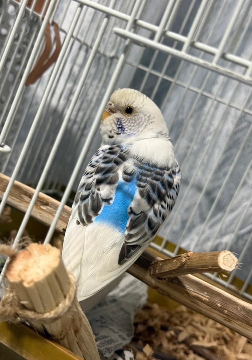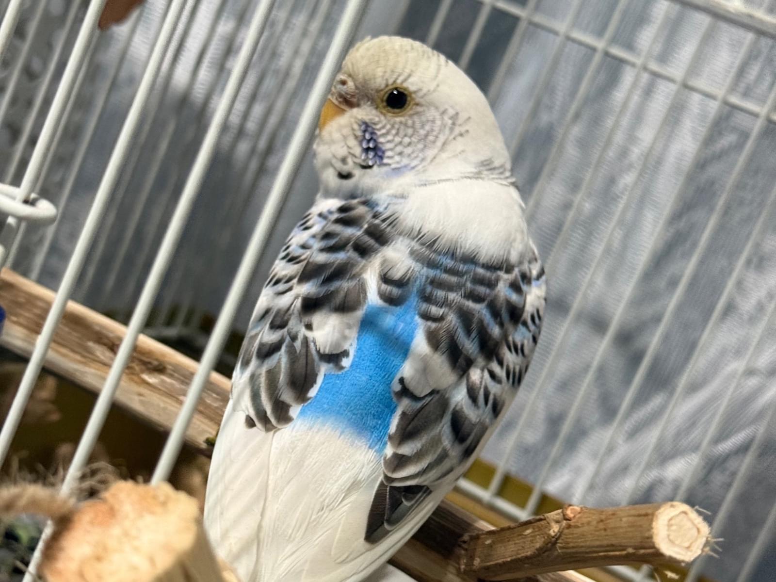 水色のセキセイインコを保護しております。