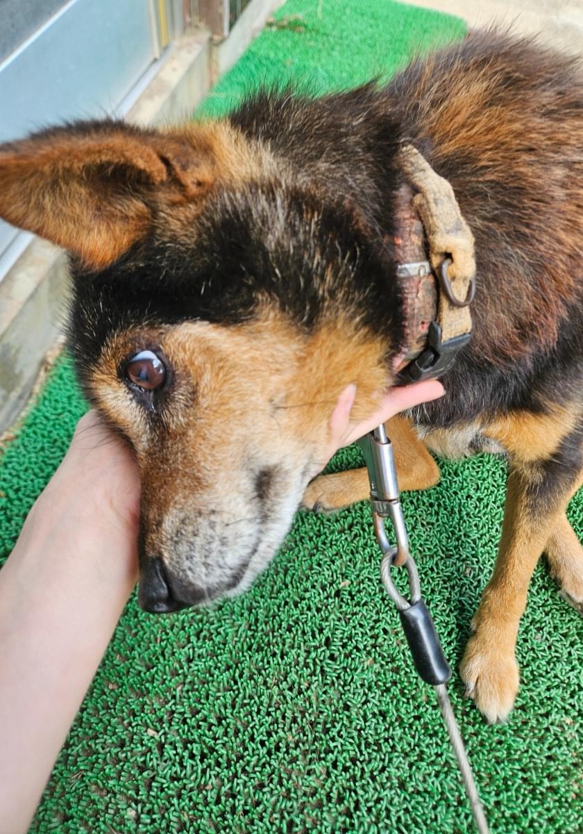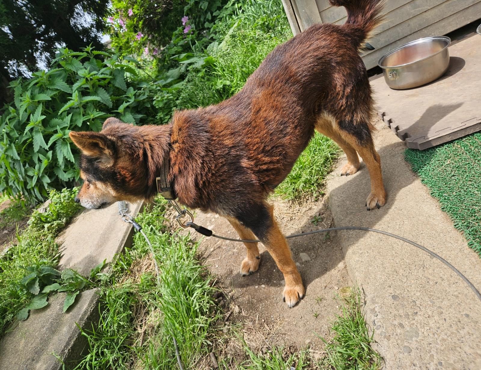 人懐っこくて、人について行くような子です。名札などはしてないですが、薄橙色と赤の首輪を1つずつ付けてます。足だけ薄茶色ぽい色をしてます。