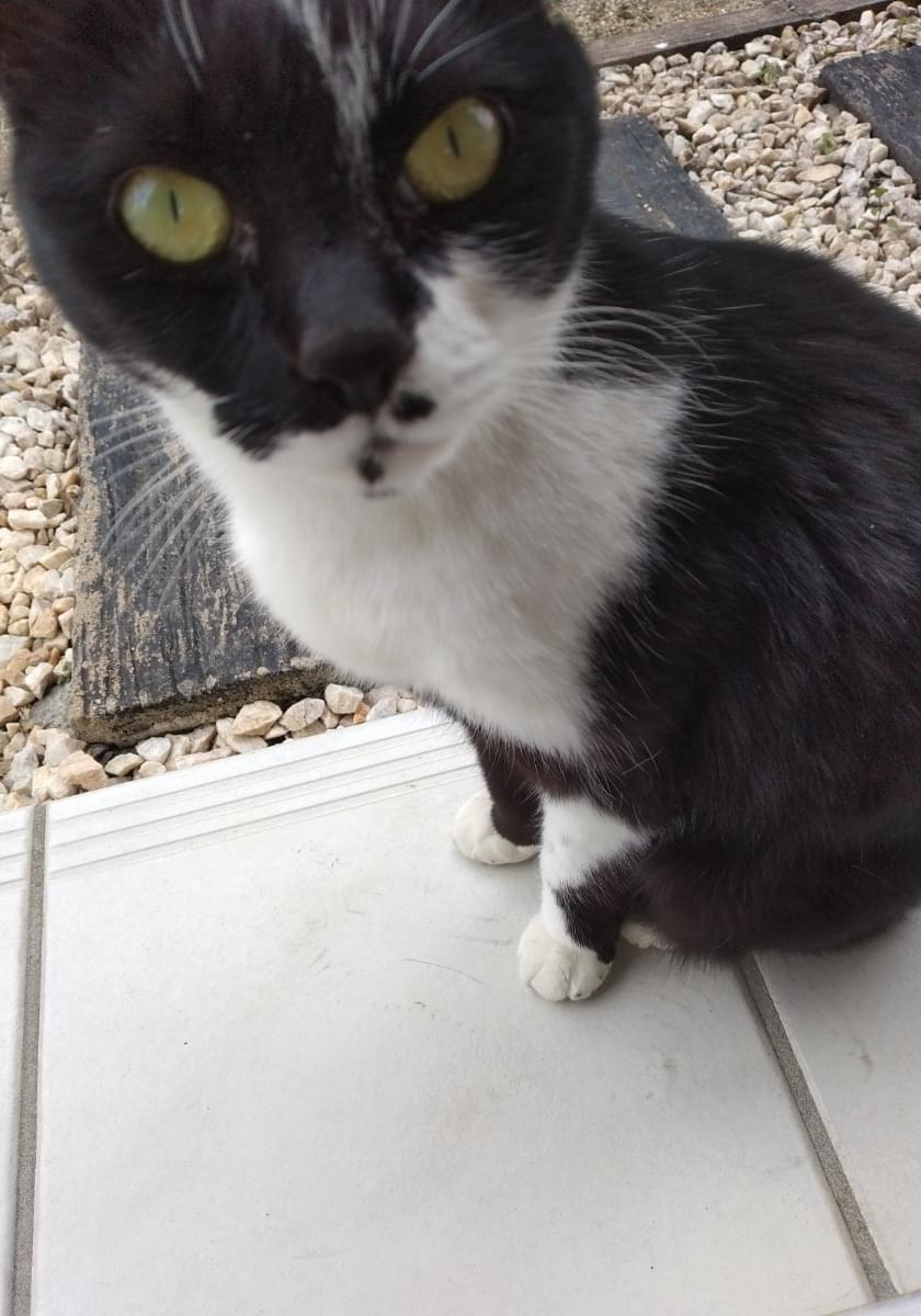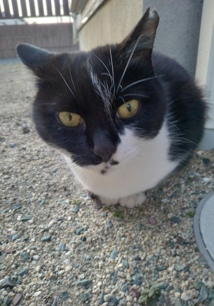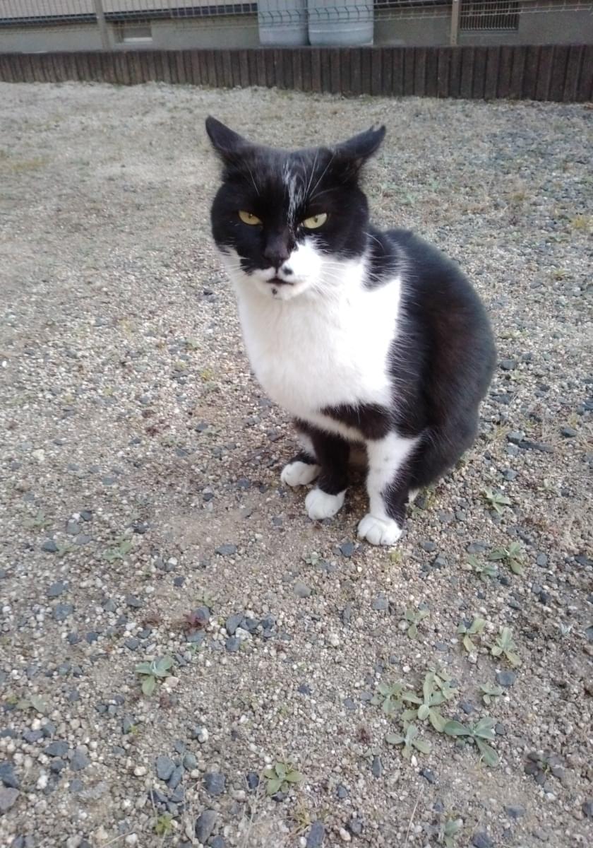 去年の11月あたりから見かけるようになり、とても人懐っこいので地域猫として面倒を見ていましたが、避妊手術がしてあった事から飼い主がいると思われます。首輪はしていません。