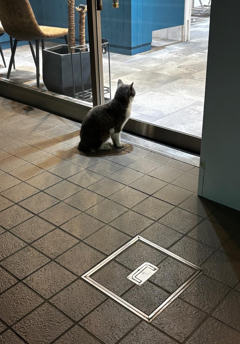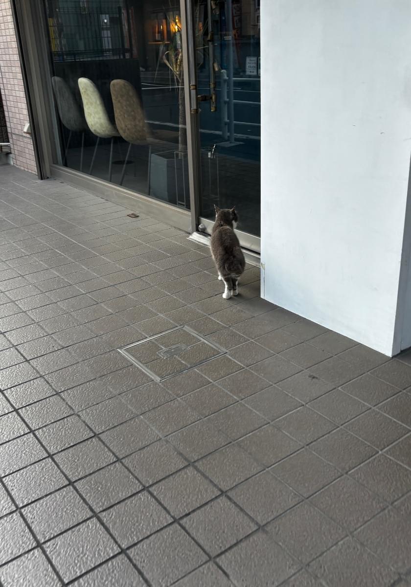 妙典駅付近でグレーと白のハチワレちゃんがいました。先週からよく見かけます。