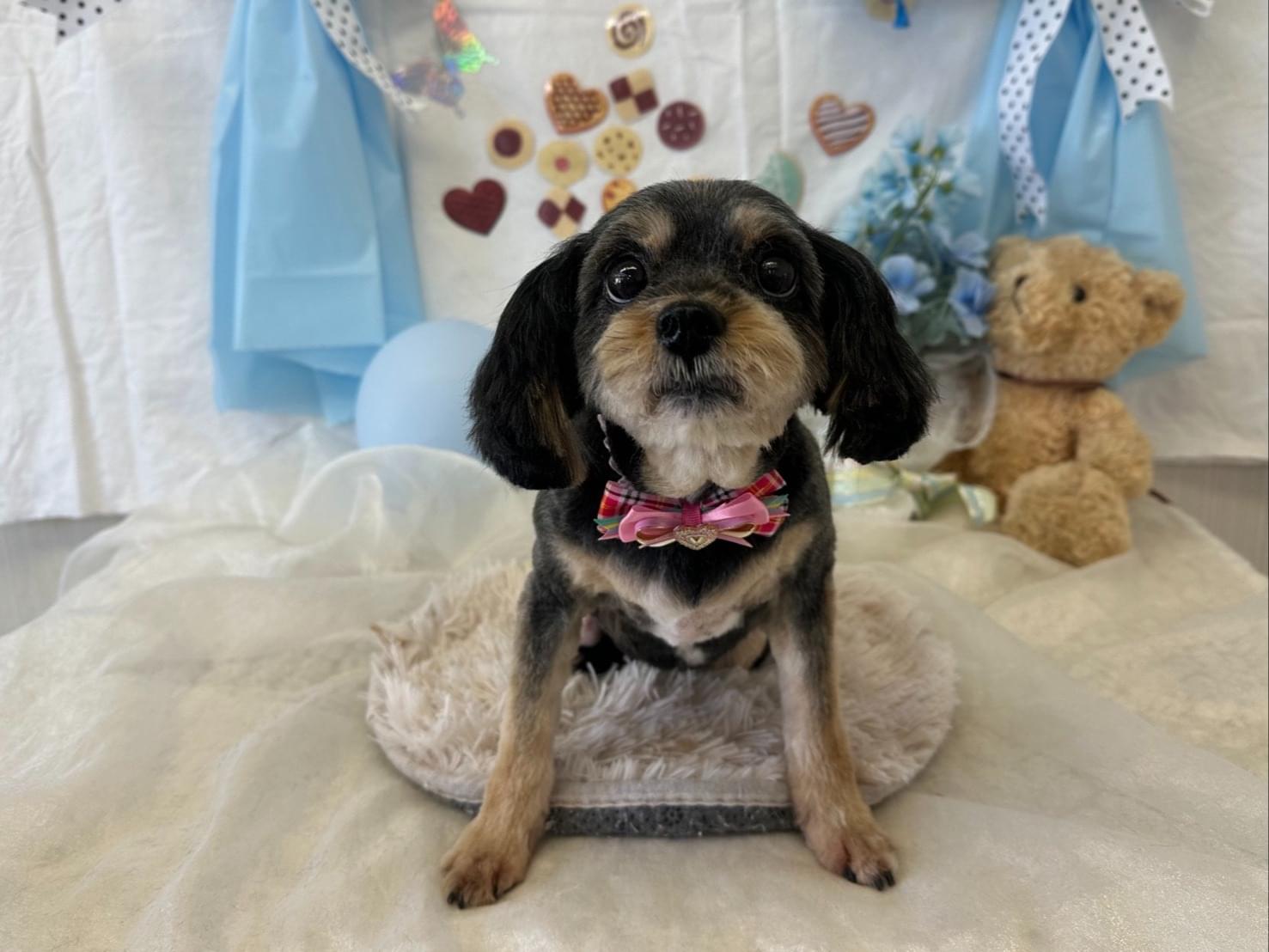 迷い犬 探しています。小型犬 黒と茶色毛 ピンクの首輪をつけています。