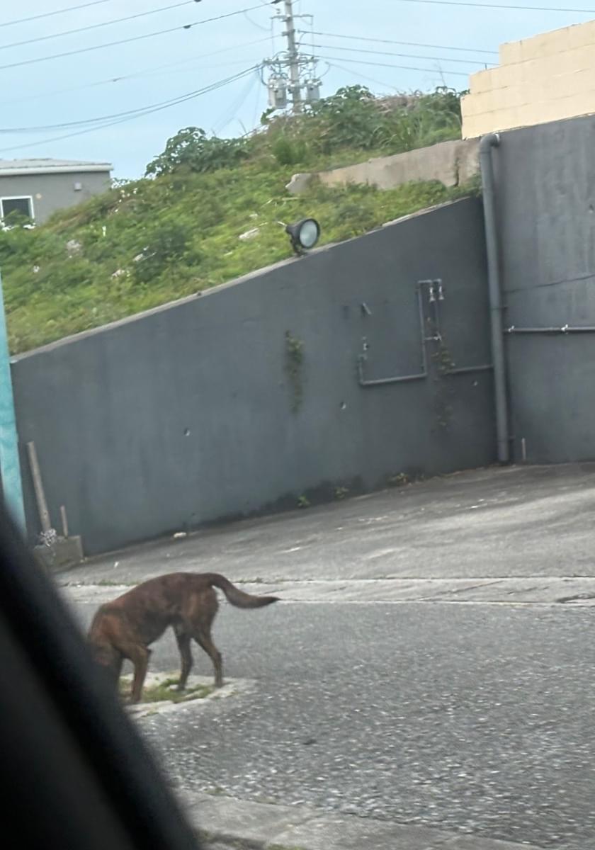 大謝名34号線辺りで赤い首輪をした