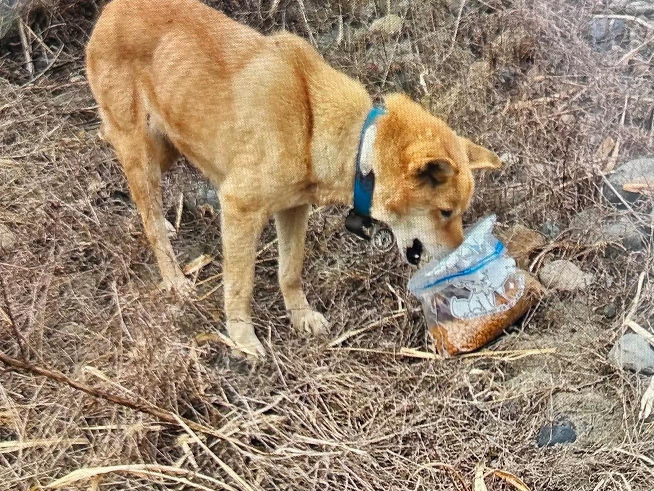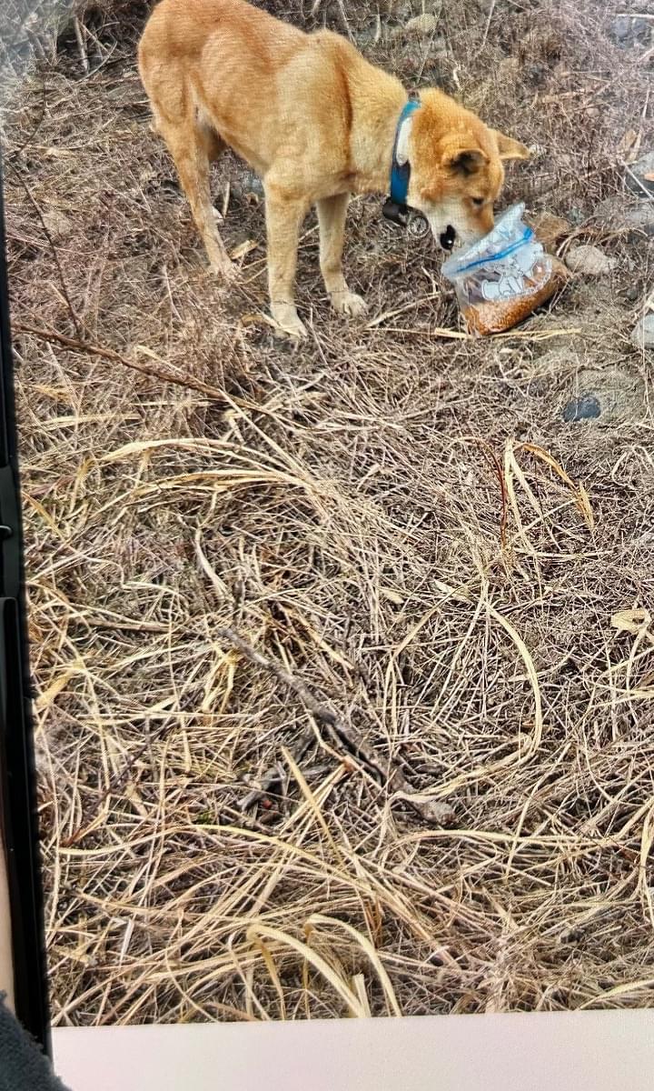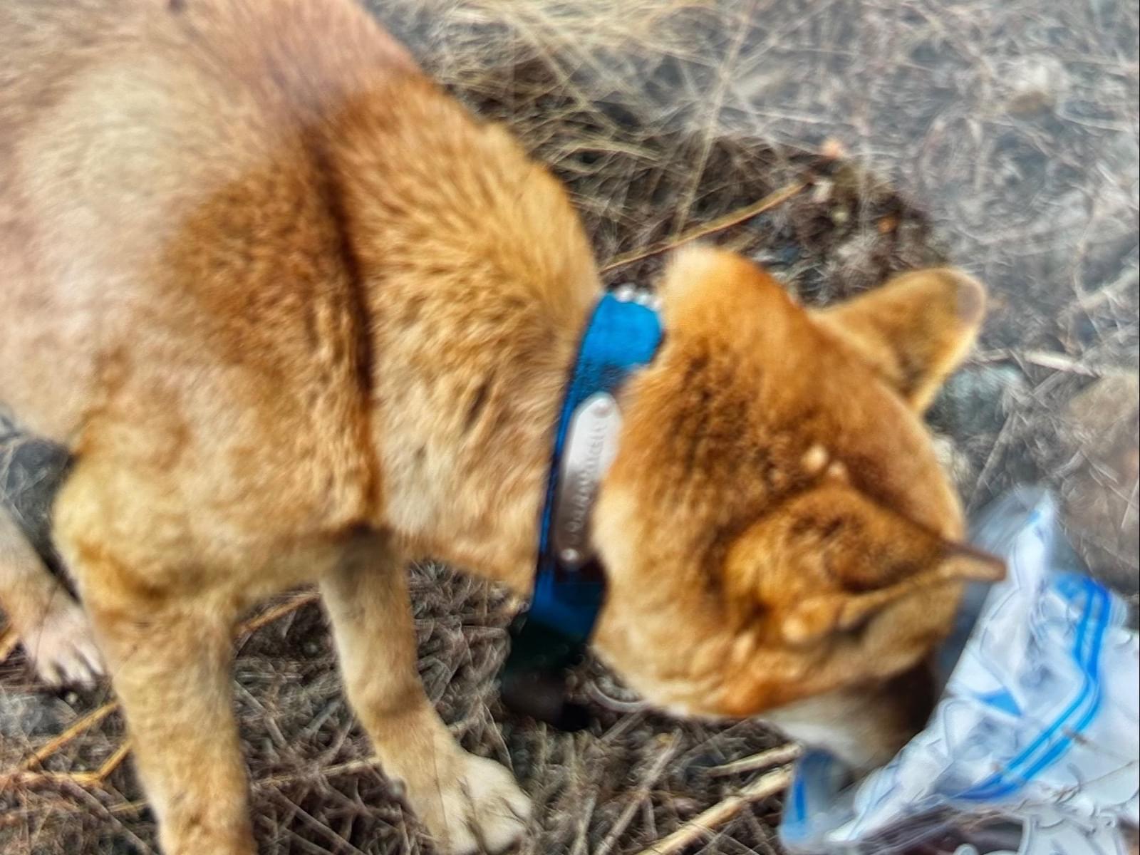 青い首輪に白くて丸いなにかがついてる子が