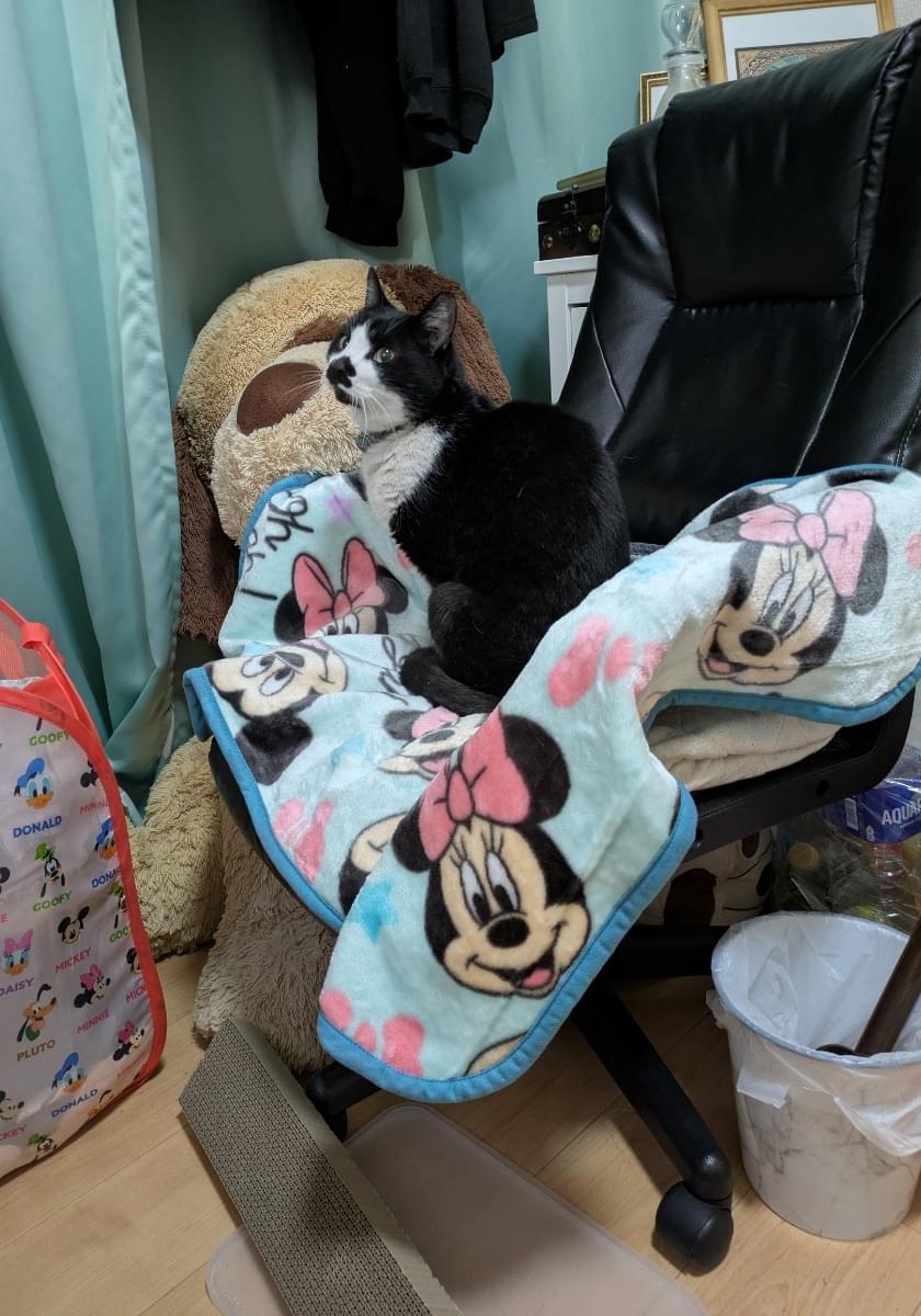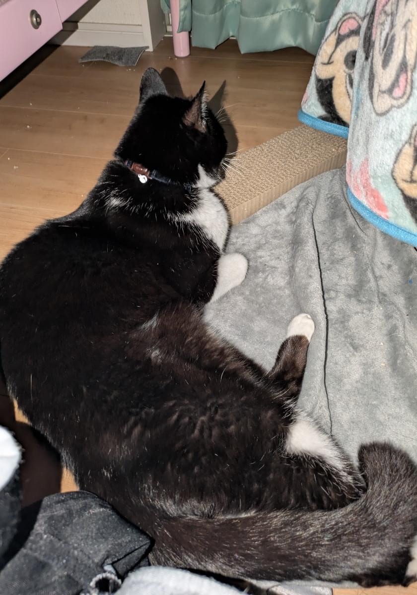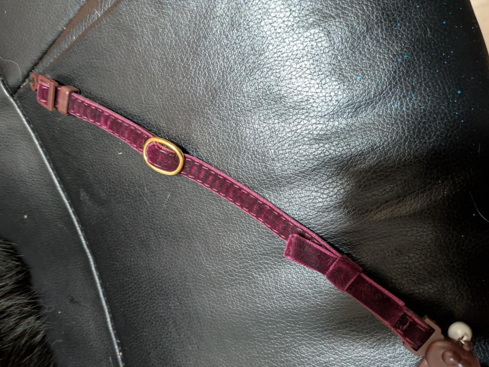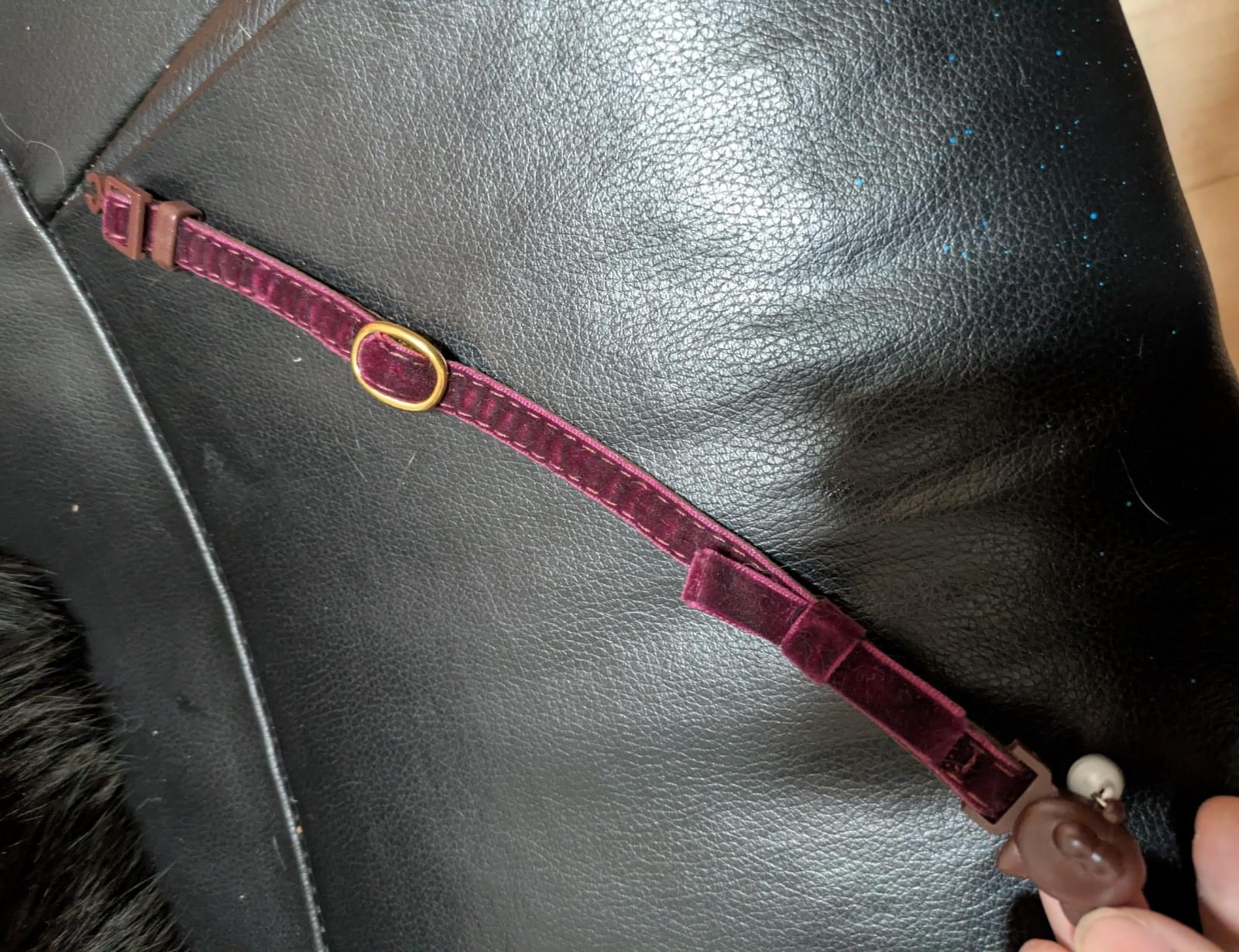 もし取れてなかったら貼ってある画像と色違いの紺色の首輪をつけています。