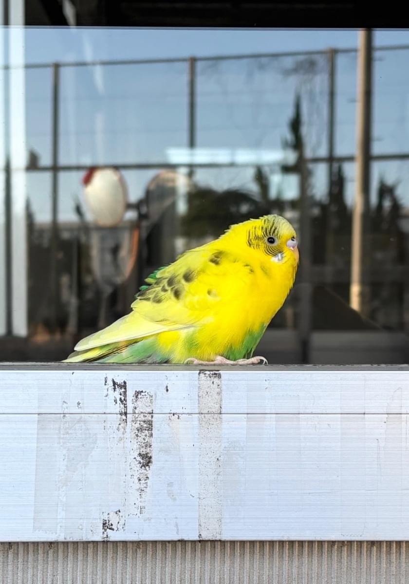 黄色と緑のセキセイインコを保護しました