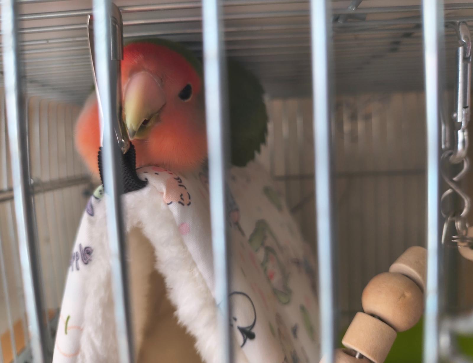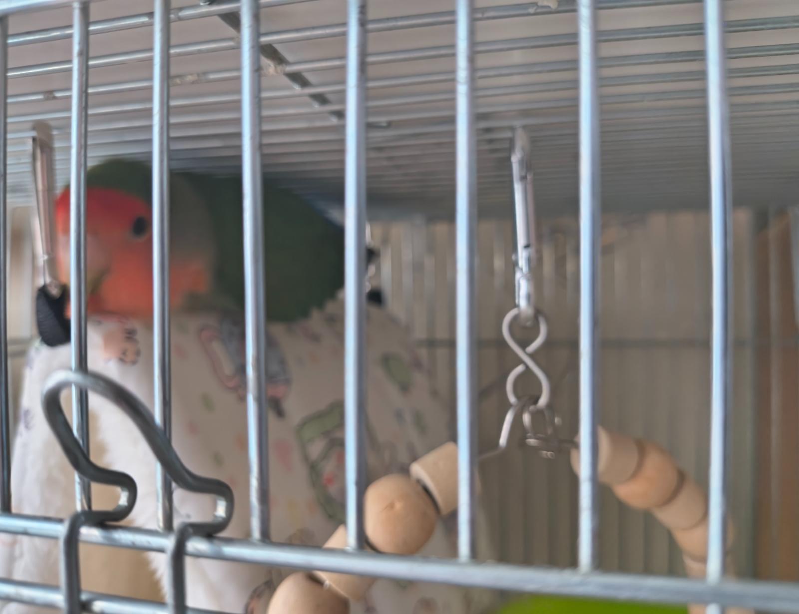 追記: 朝起きたところ、インコの鳴き声が聞こえて、おもちゃの音で反応しました。高いところにいたんですが、飛んで保護しにくくなっているかもしれません。