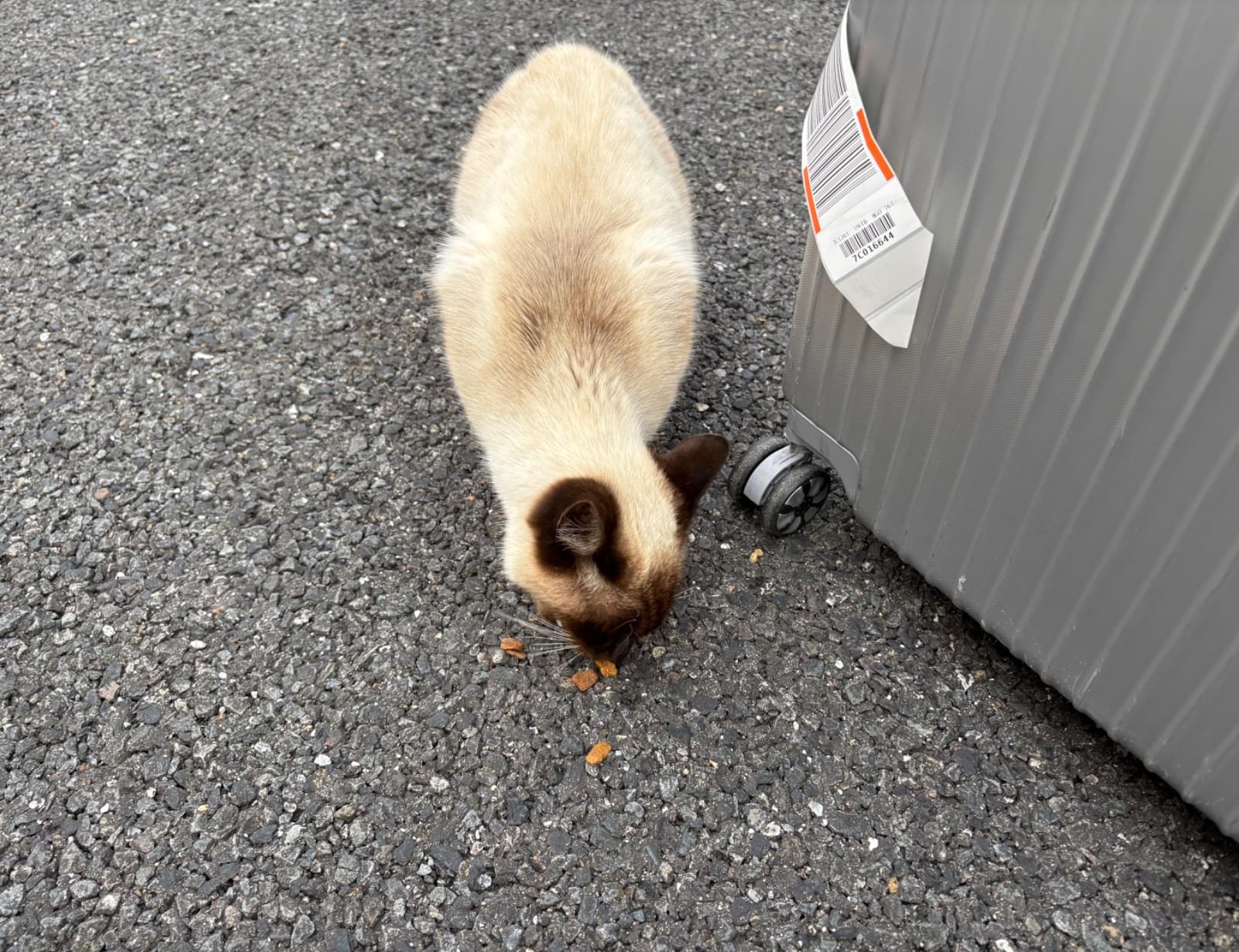 人慣れしている様子で、近づいても逃げず、ごはんも食べていました。