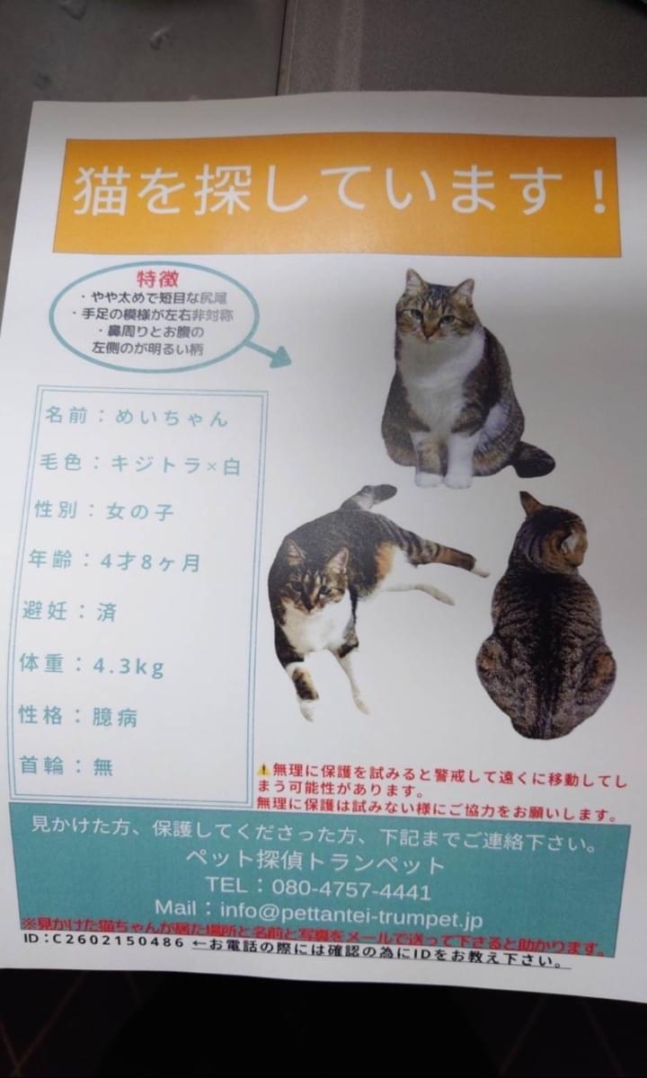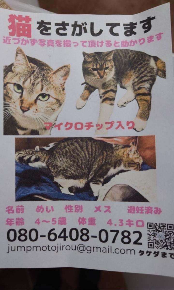 茨城県古河市諸川付近 キジ白の迷い猫探しています