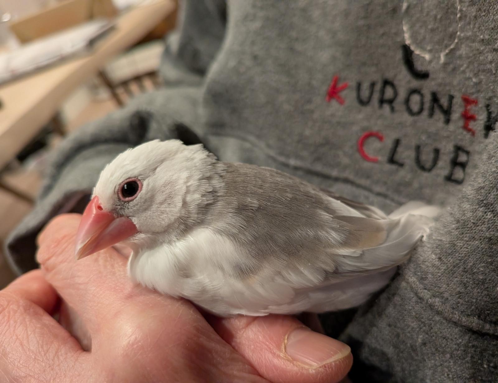 21日18時 文鳥が窓ガラスにぶつかって来て室内を覗くので ベランダに出て呼ぶと肩に乗って来ました とても人馴れしてます ペットショップに走って餌を入手 心配しましたが問題なく沢山食べて元気にしてます