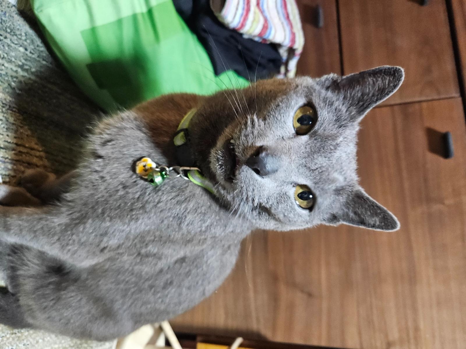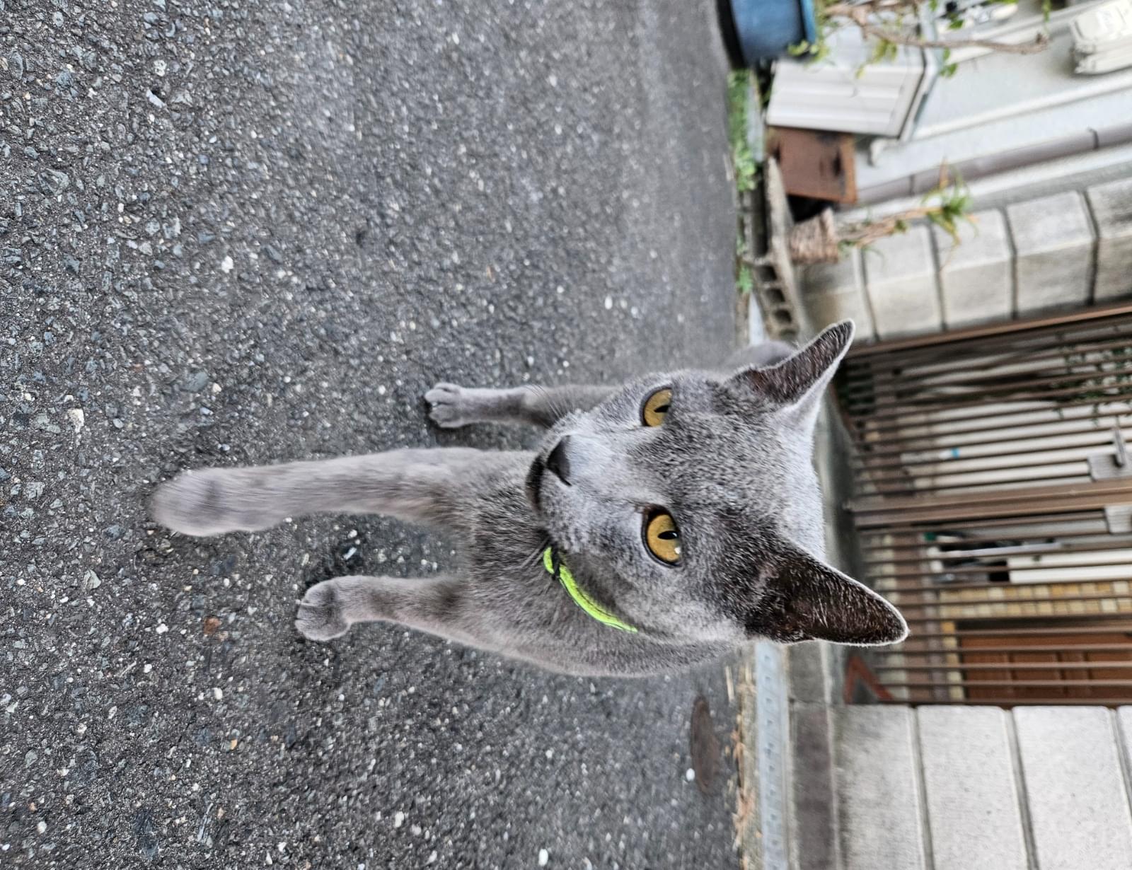はずれていなければ蛍光の黄緑に反射テープのついている首輪をしています。