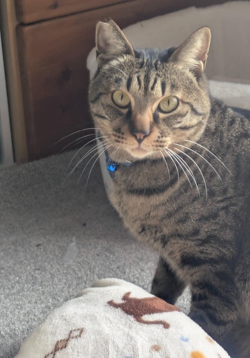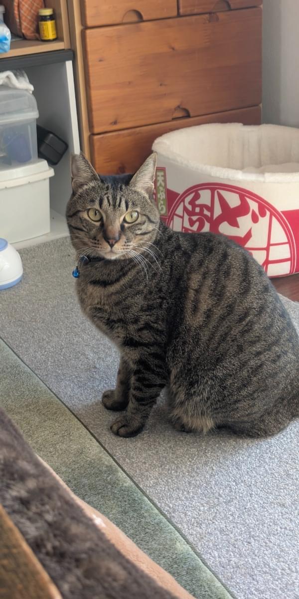 さくら猫 青首輪 鈴付き 首輪の裏にすなの名称と建物名部屋番号記載あり