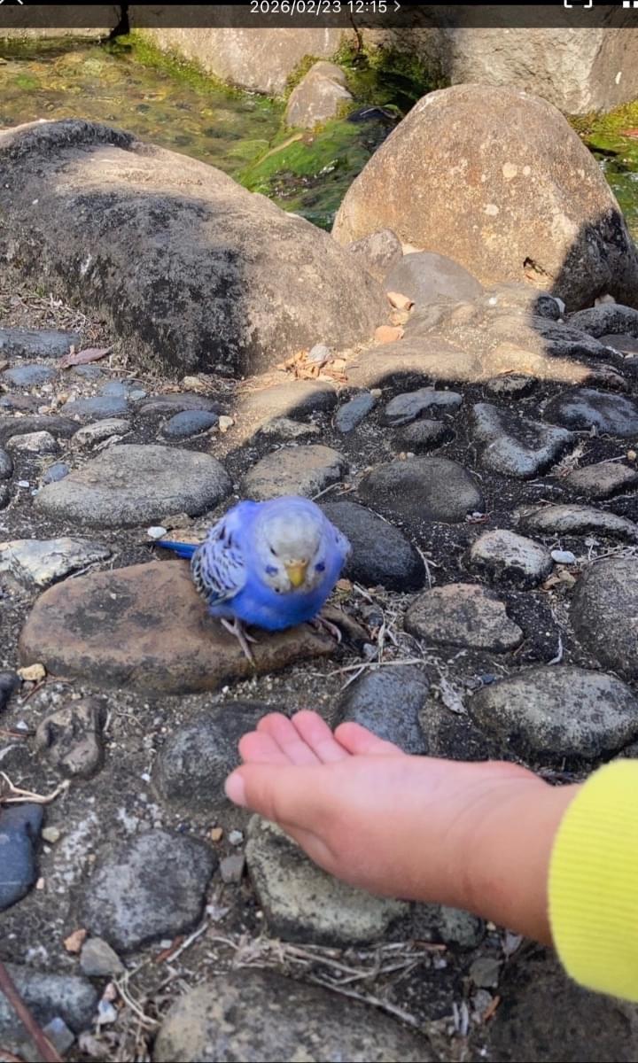 2026.2/23 12時頃に西川田のコジマこどもサイエンスパークの小川で遊んでいたらインコが手や肩に乗ってきたそうです。とても人懐っこく、とりあえず保護して連れて帰り飼い主様を探そうとパーク内をインコと一緒に移動していたら、物音に驚いて飛んでいってしまったそうです。