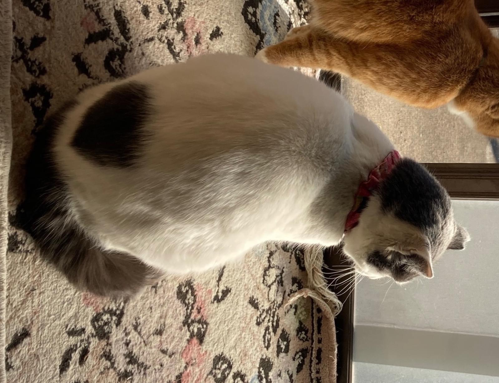 ・首輪: シュシュ(おそらく水色で柄あり)