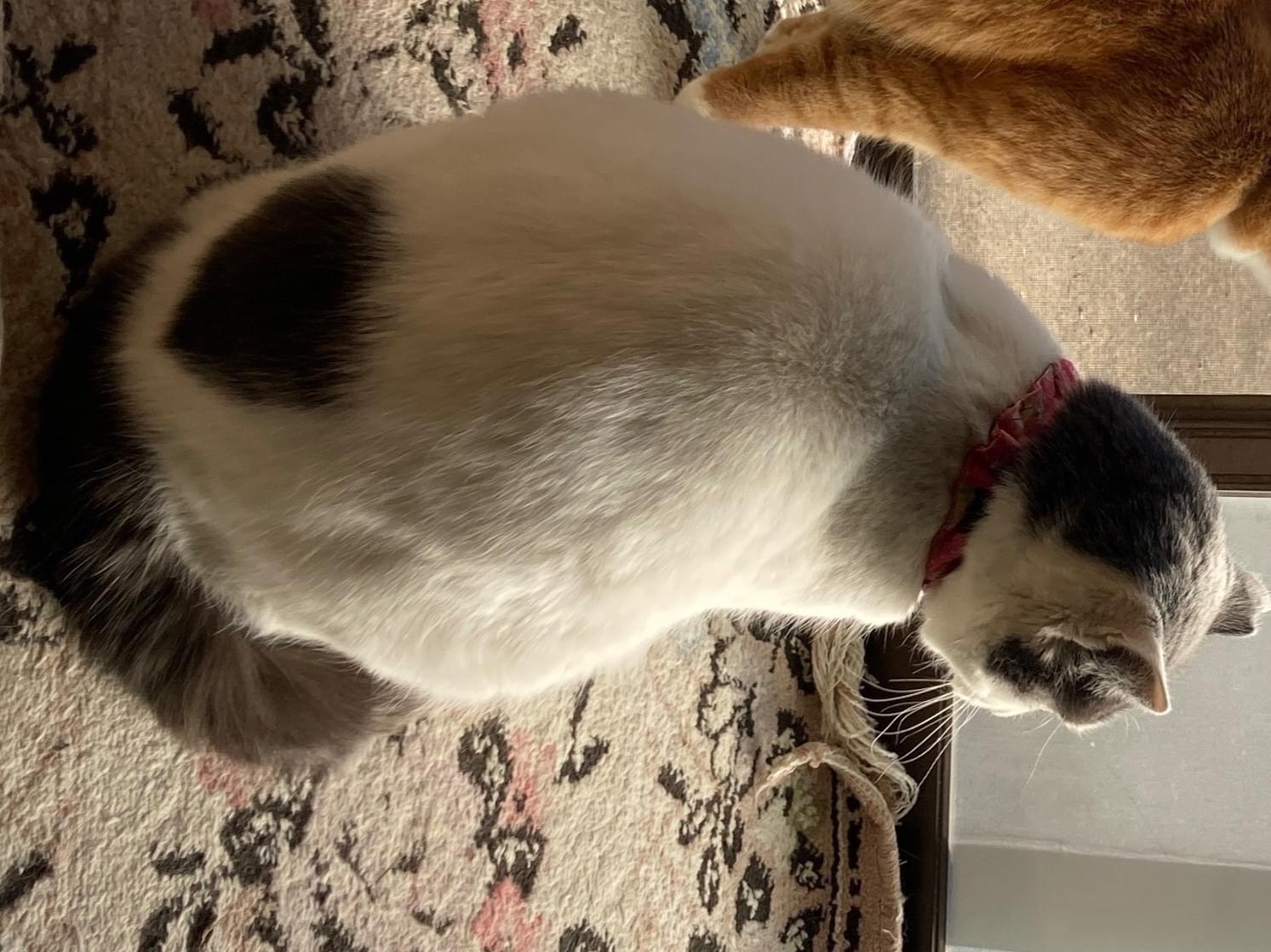 ・白地に黒(濃灰色)模様 しっぽは長く黒い