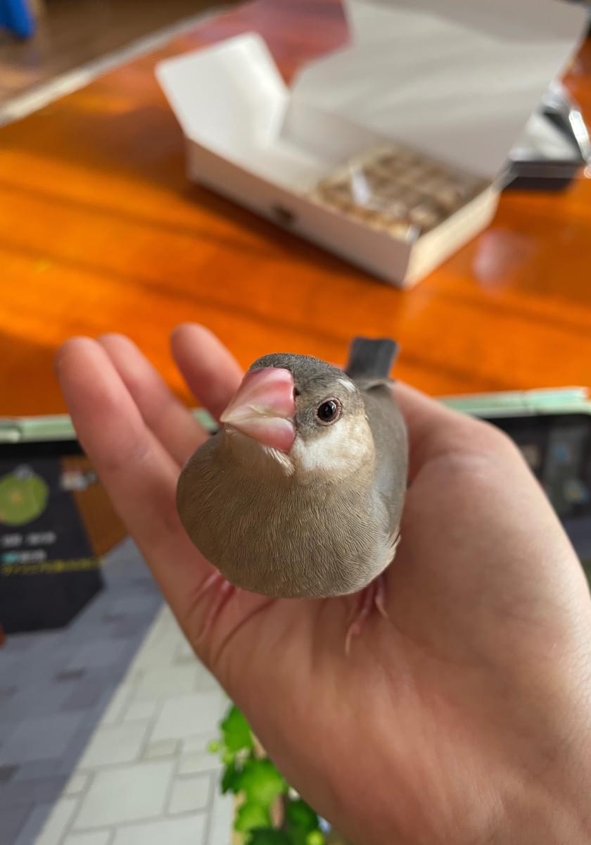 最近クチバシが、ピンクになったばかりのシルバー文鳥です。