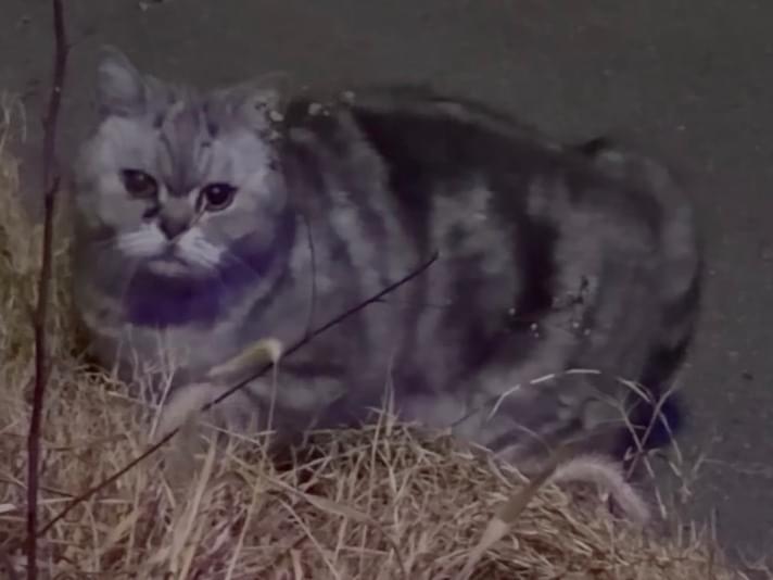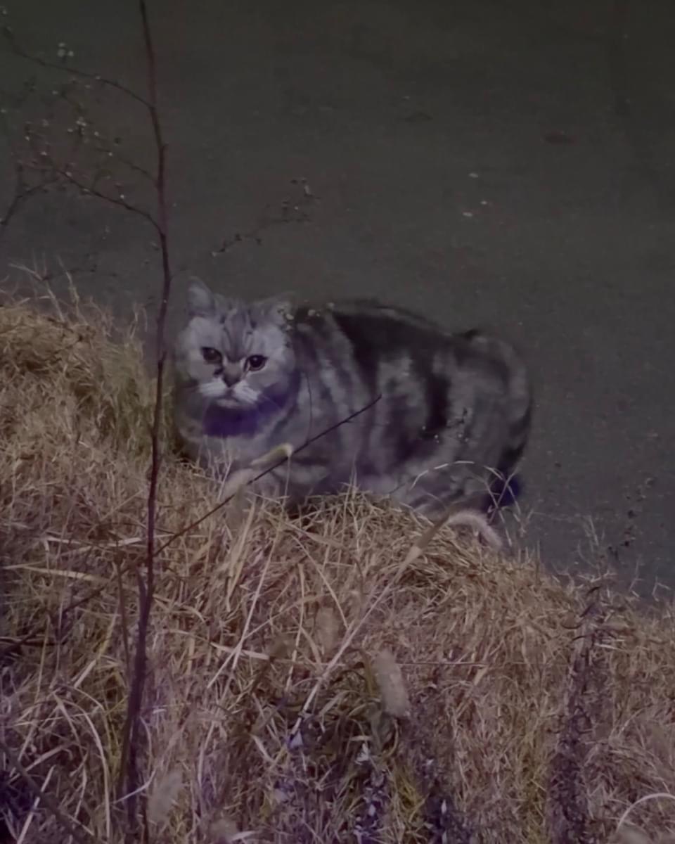 20時すぎに羽衣駅の廃パチンコ店の前で迷い猫と思われるサバトラの男の子を目撃しました。