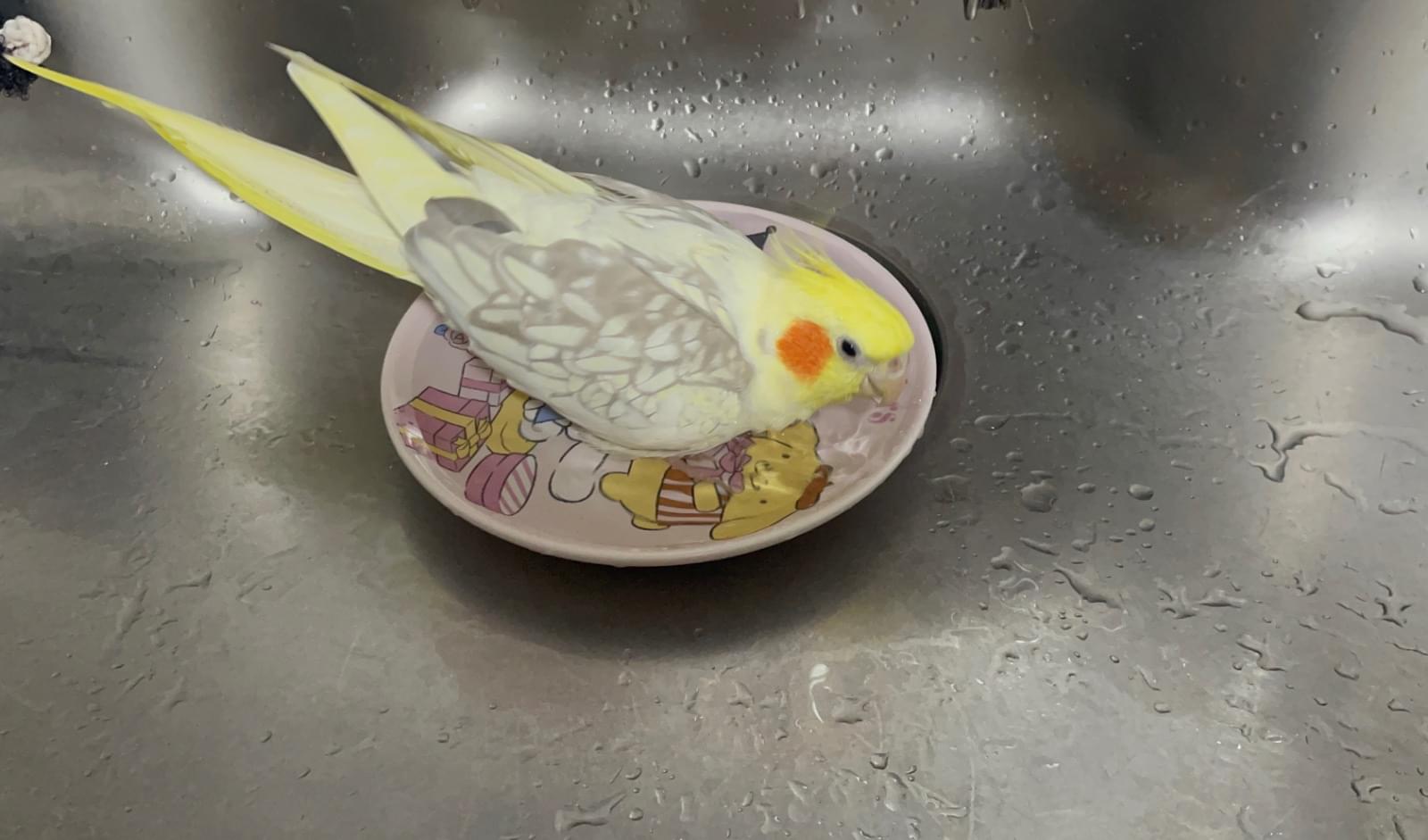頭と尻尾は黄色く羽は白に薄い茶色の模様があり、小さなハートが背中から見えます。人懐っこいですが、飼い主の私以外は家族でもたまにしか触らせてくれない性格です。名前を呼ぶとぴー、ピーと返事します。
