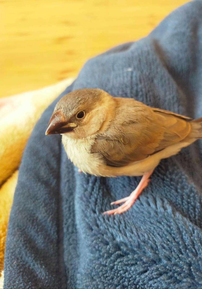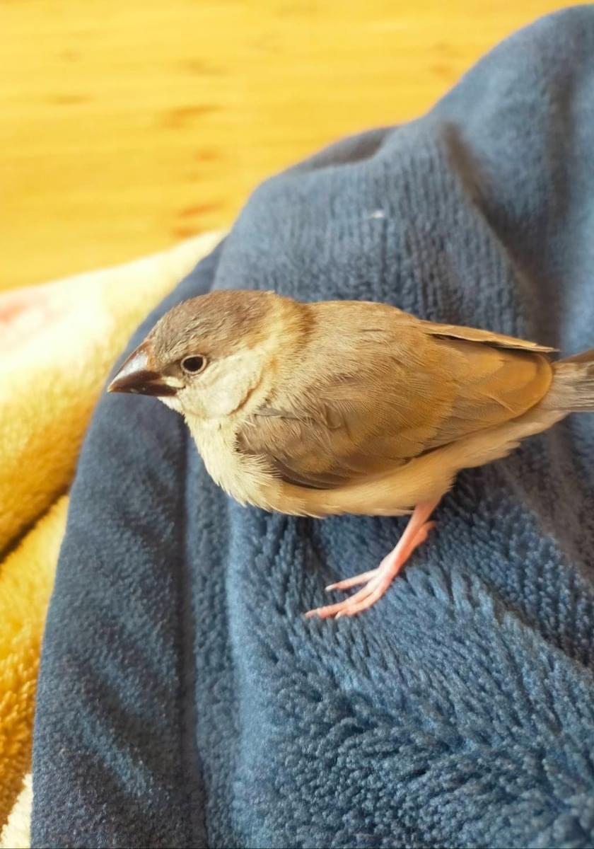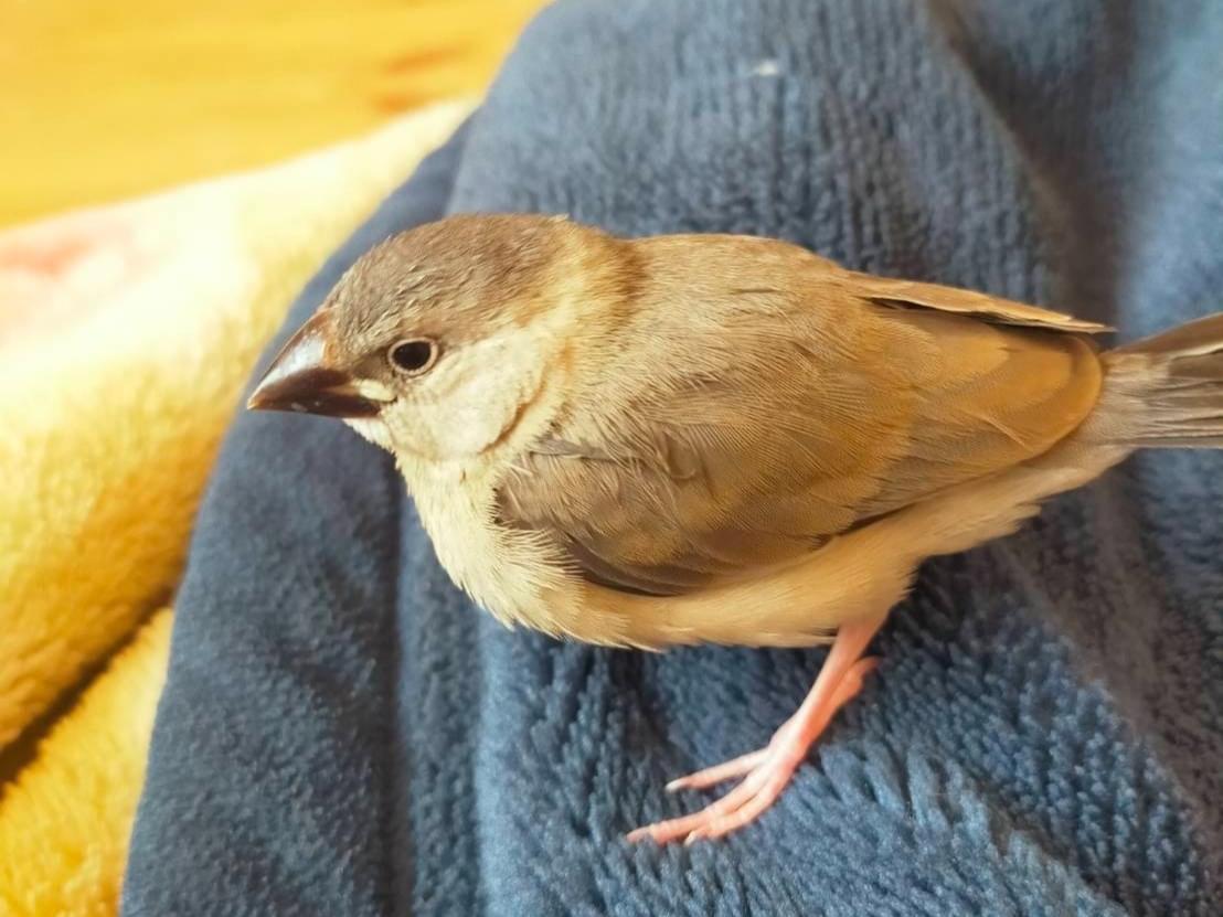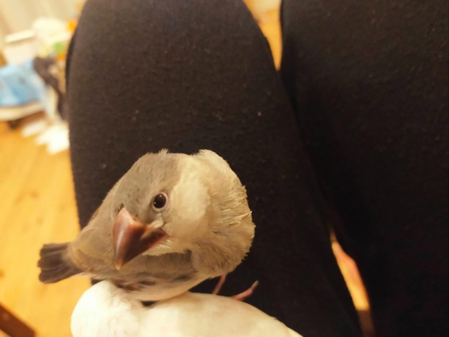 桜文鳥ですが、まだ幼鳥で模様もはっきりしておらず、くちばしもまだ黒いです。
