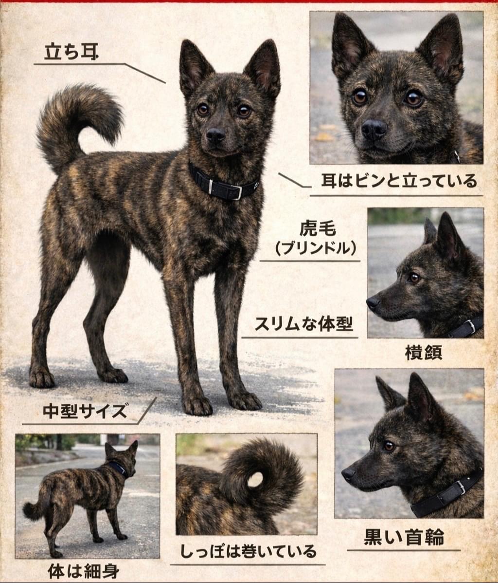 ブリンドルで立ち耳。目は甲斐犬よりパッチリ。