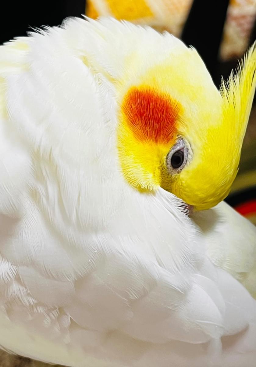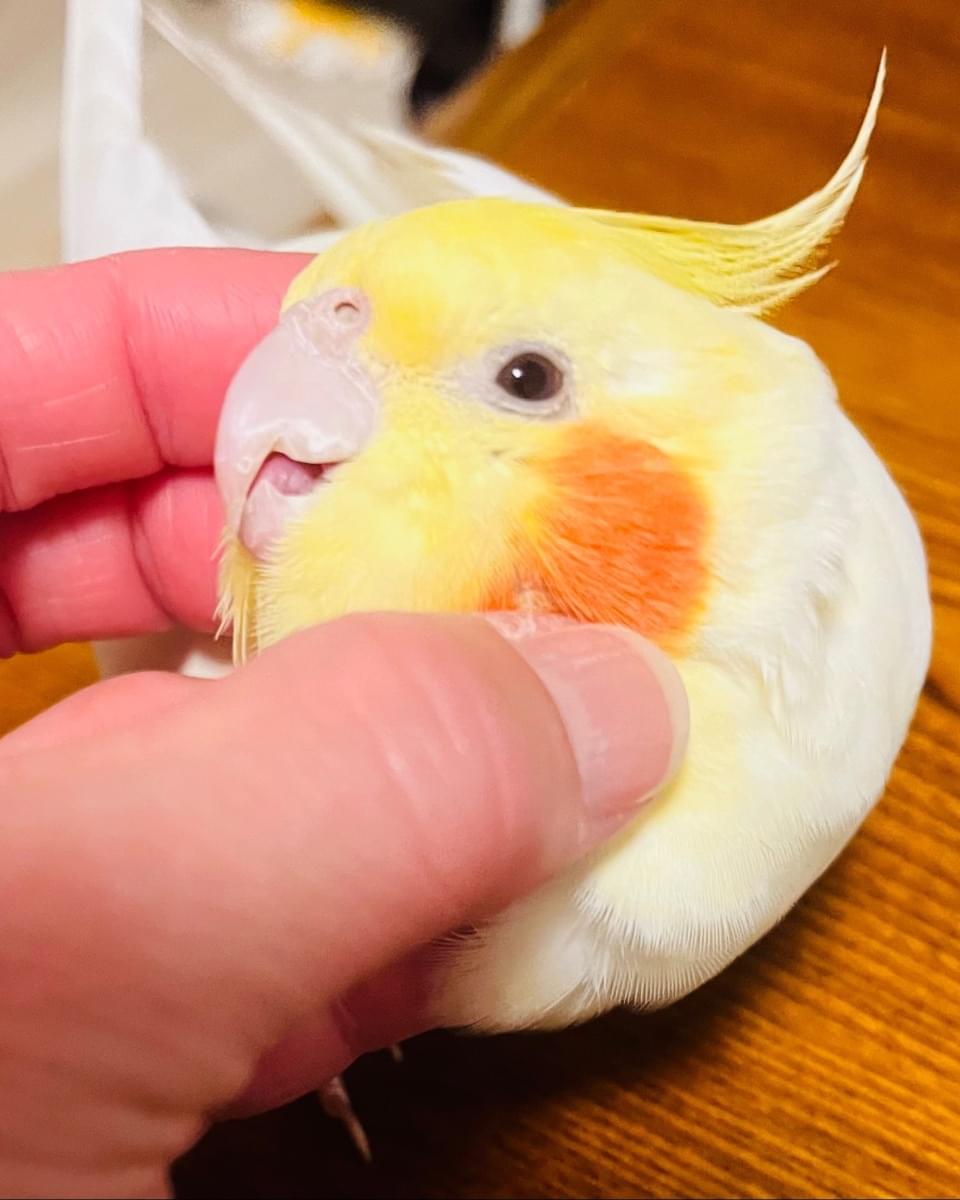 オカメインコです。毛並みがやわらかく綺麗な子です。怖がりです。