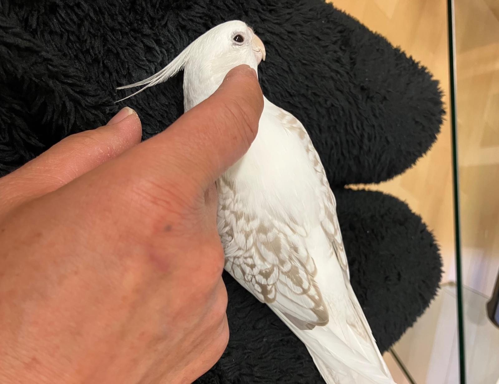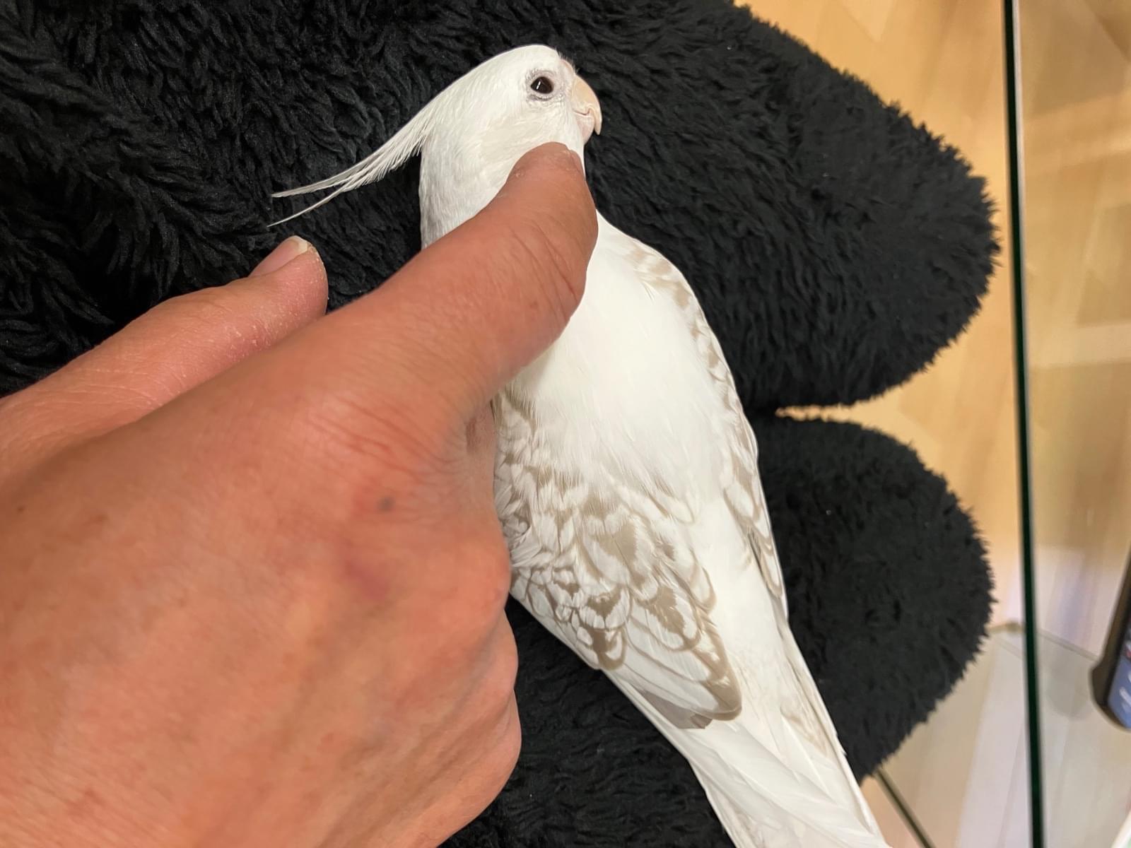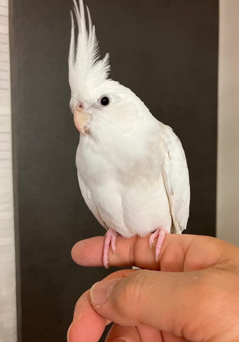 完全なホワイトフェイスで羽根がパールの子です。2/22に自宅デッキから飛び出してしまいました。昨年12/20中羽根がカットされており、宅内ではうまく飛ぶ事ができなかったのですが、一瞬の内に隣家の陰に飛び立って不明となってしまいました。耳穴のマッサージが好きで、手を出すと頭を下げて摩るのをねだります。