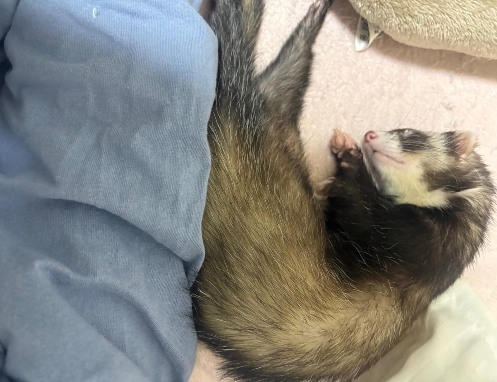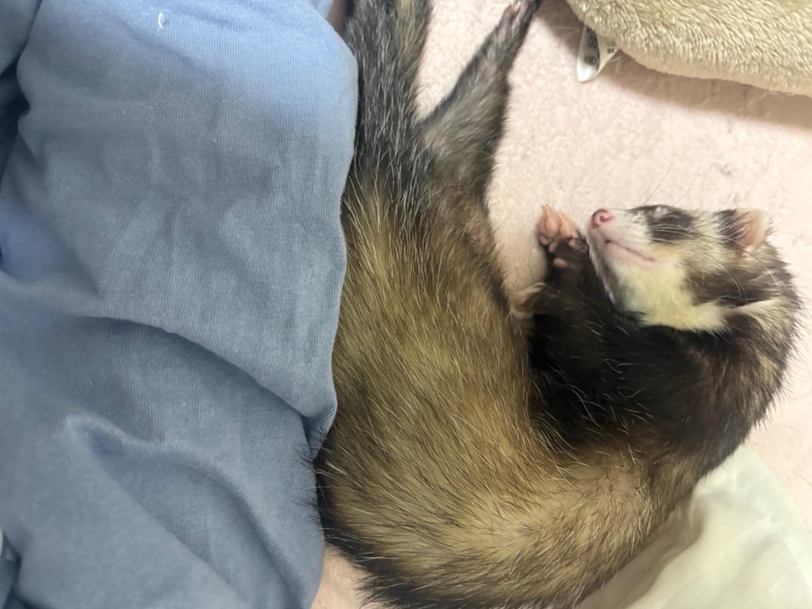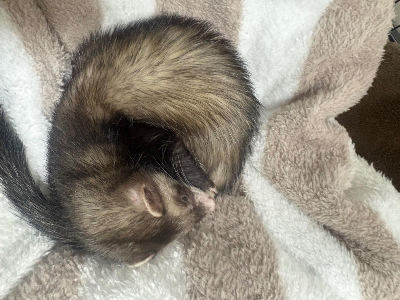 白混じりのこげ茶、鼻と手が白いマーシャルフェレット探してます。