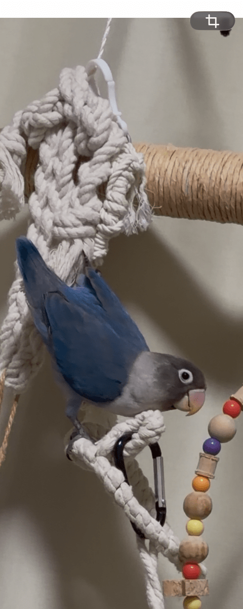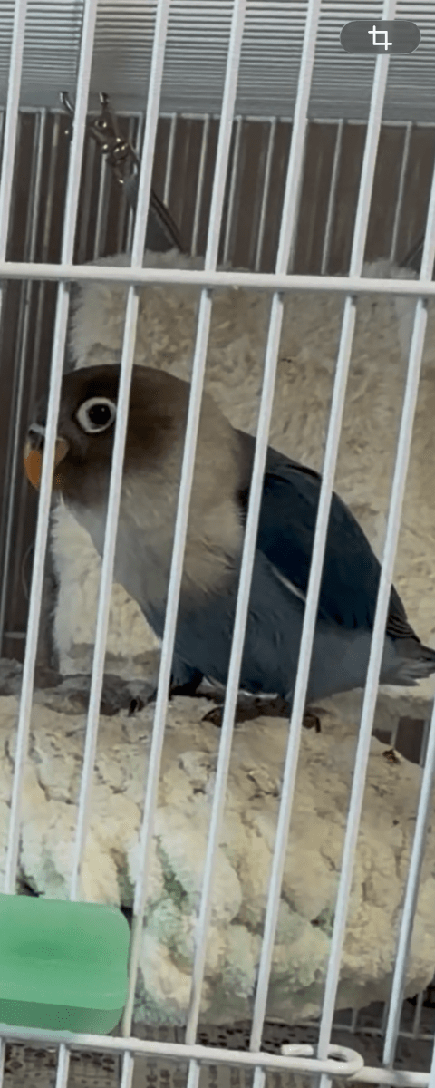 ブルーのボタンインコです。目の周りに白い輪。小さなインコです。
