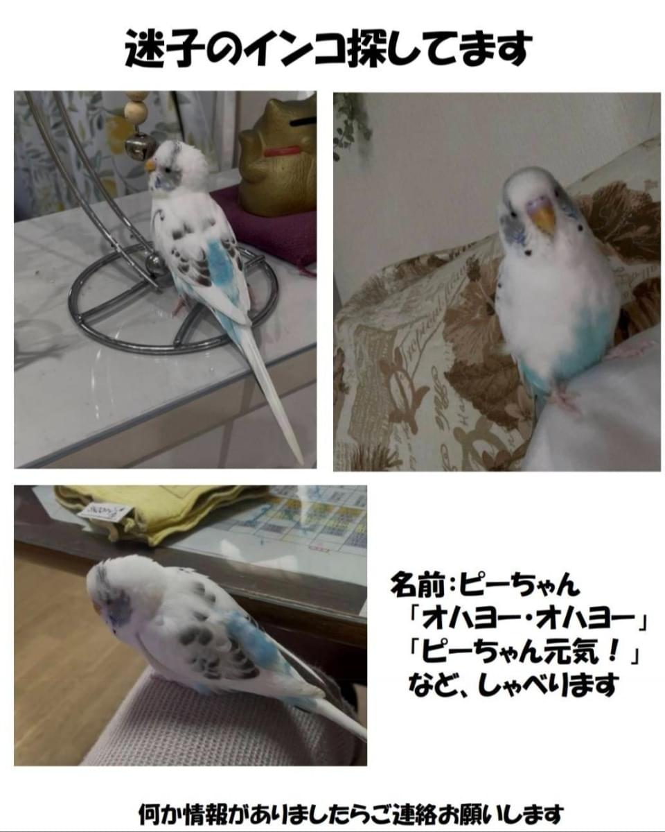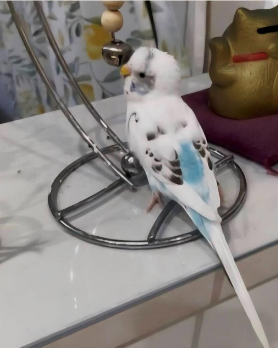 【インコを探しています】白ベースに黒い模様&お腹が水色