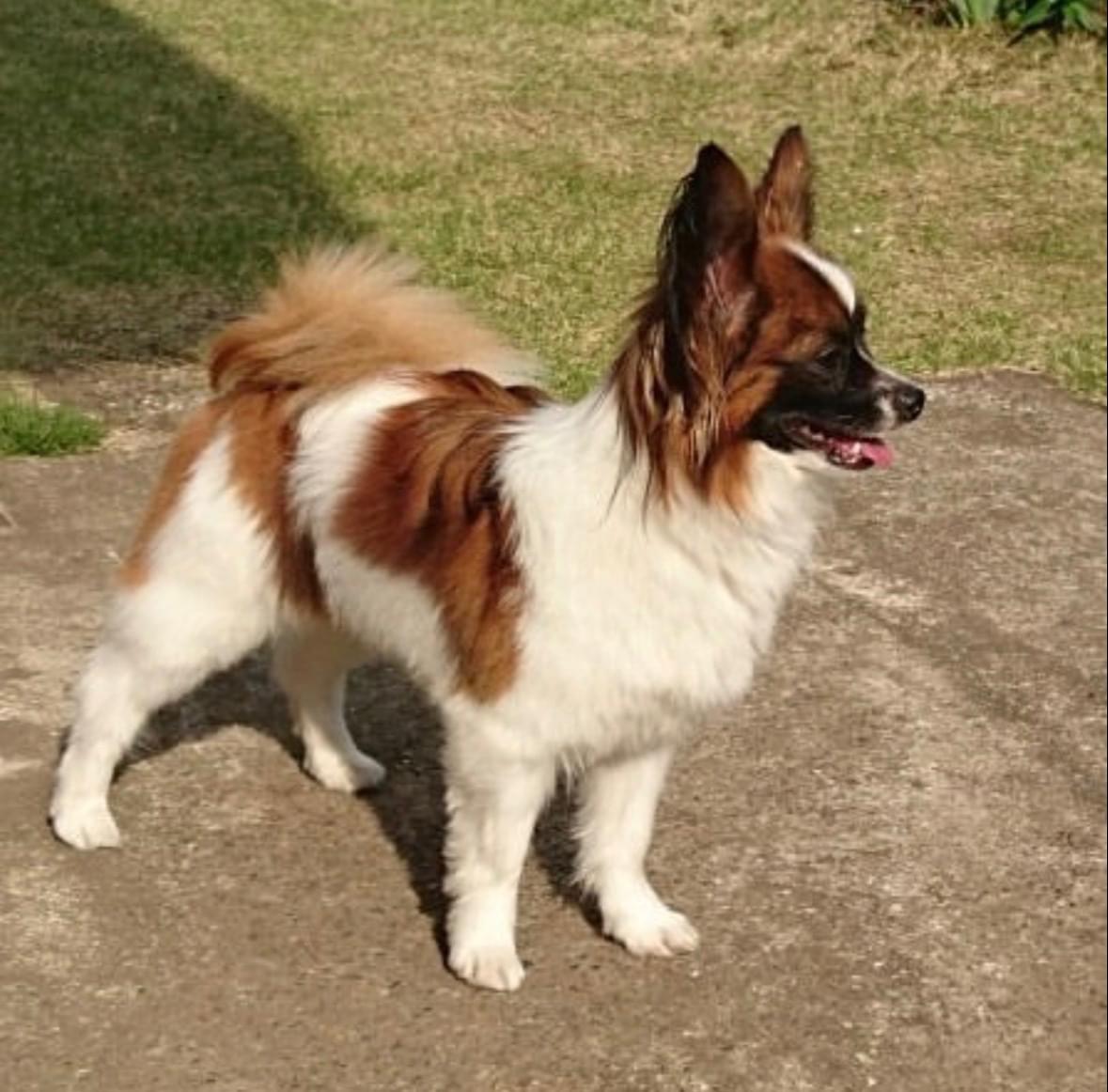 12歳、老犬、茶白のパピヨンです