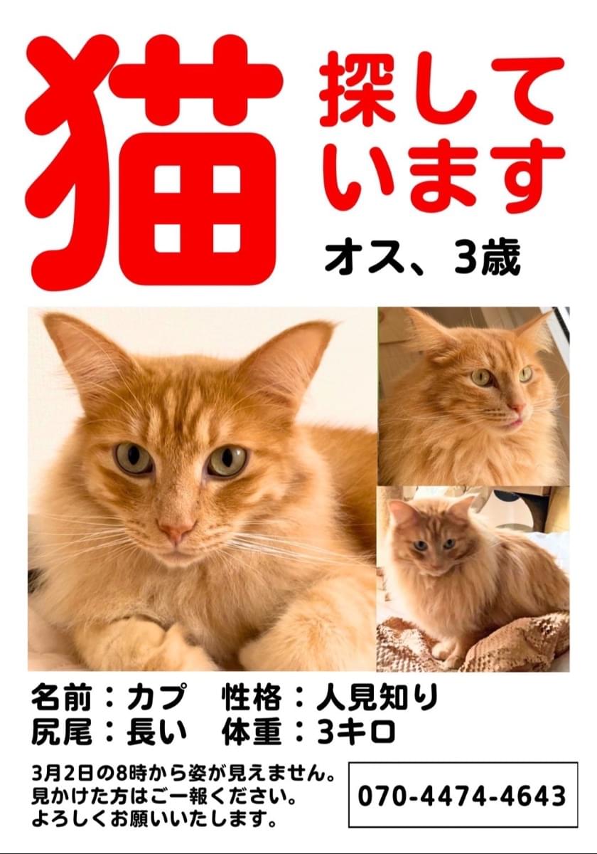 3月2日早朝に行方がわからなくなりました。完全な室内猫で去勢済み。性格はおっとりしていますが臆病な性格のため人が寄ると怯えて逃げ出してしまいます。見た目はふわふわした長毛が特徴があり従来の猫に比べて毛のせいで大きく見えると思います。宜しくお願い致します。