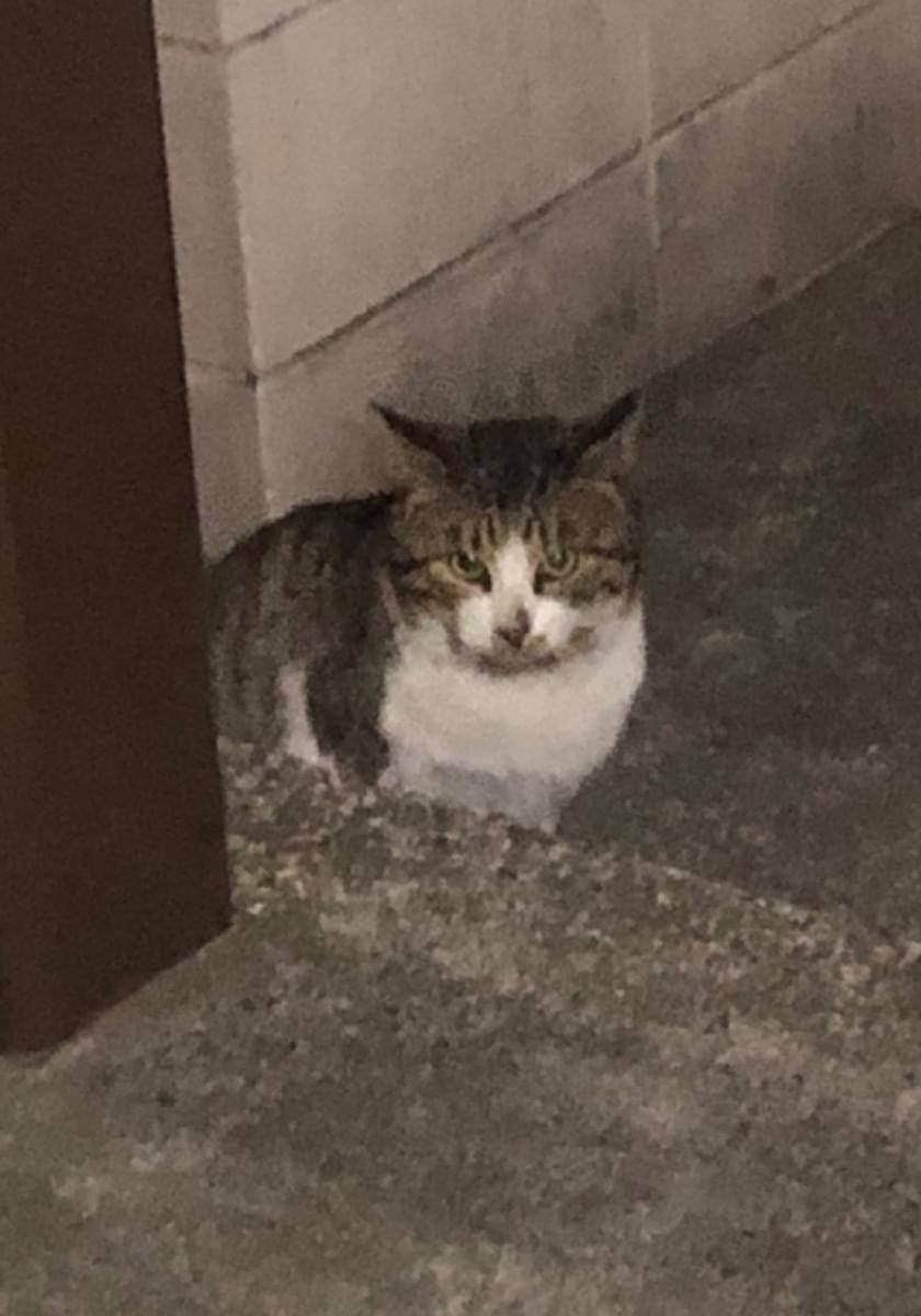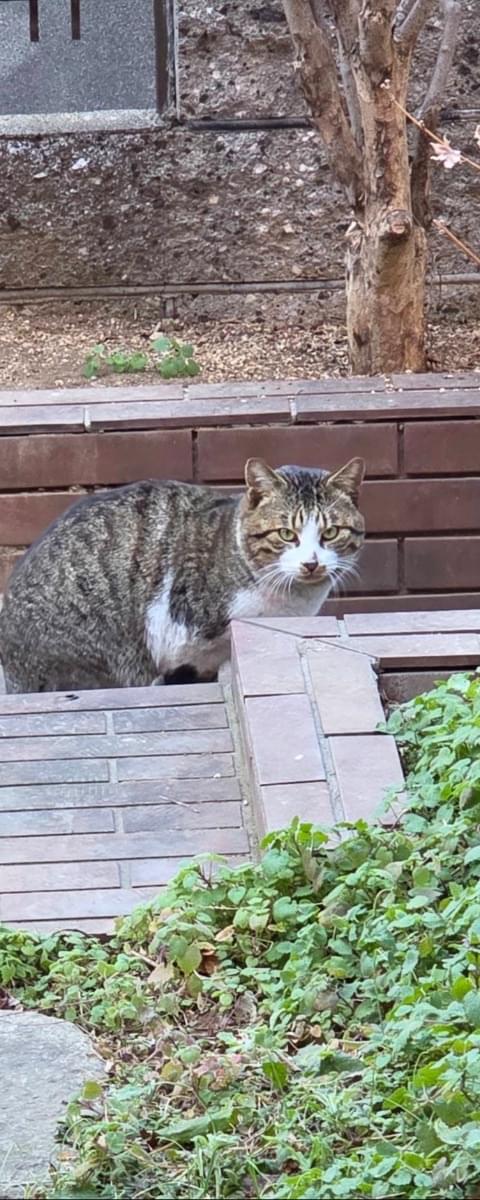今年になって近所に現れた、まだ若いキジ柄の男の子です。探してる方いませんか?尻尾は長いです。だんだん弱って見えるので保護したいと思ってます。
