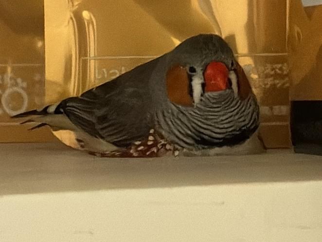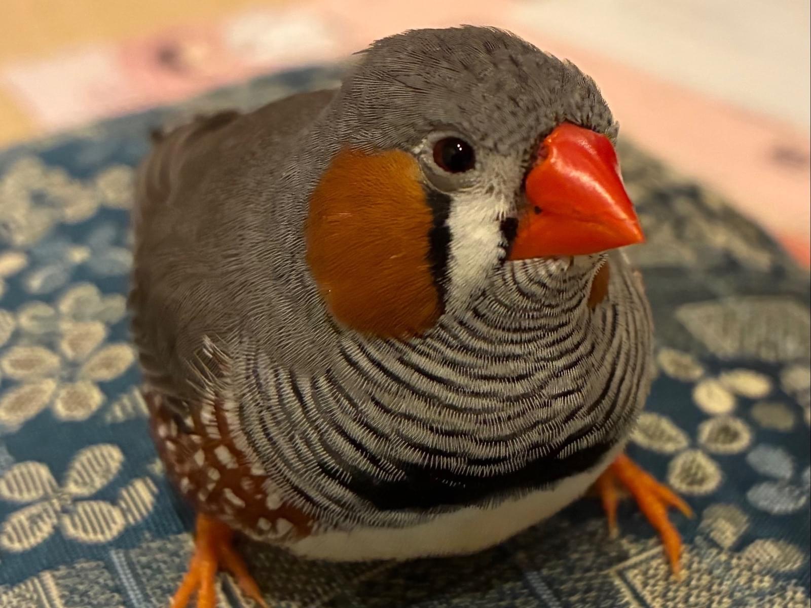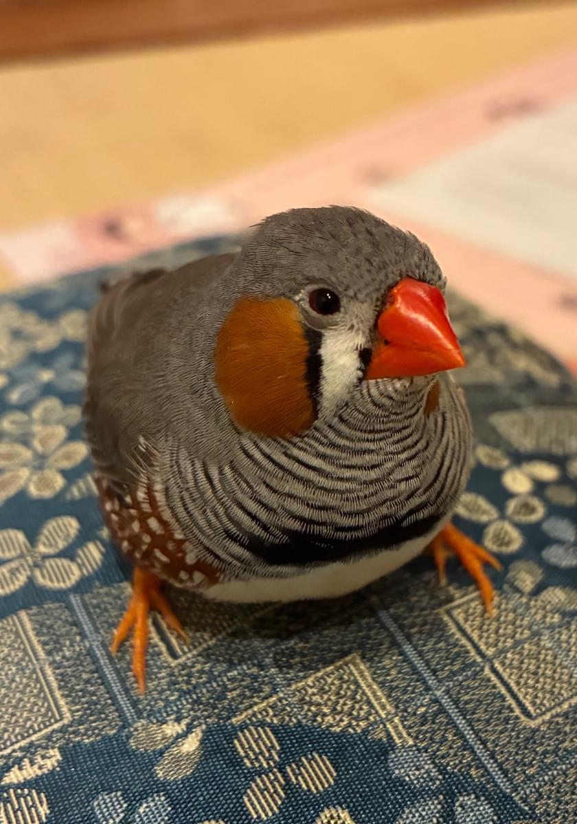 キンカチョウのオスで慎重派のビビリだと思ってます。家族の手のひらには乗りません。指の上に乗って、ごはんをあげることはありました。肩にもよくとまって遊んでくれます。