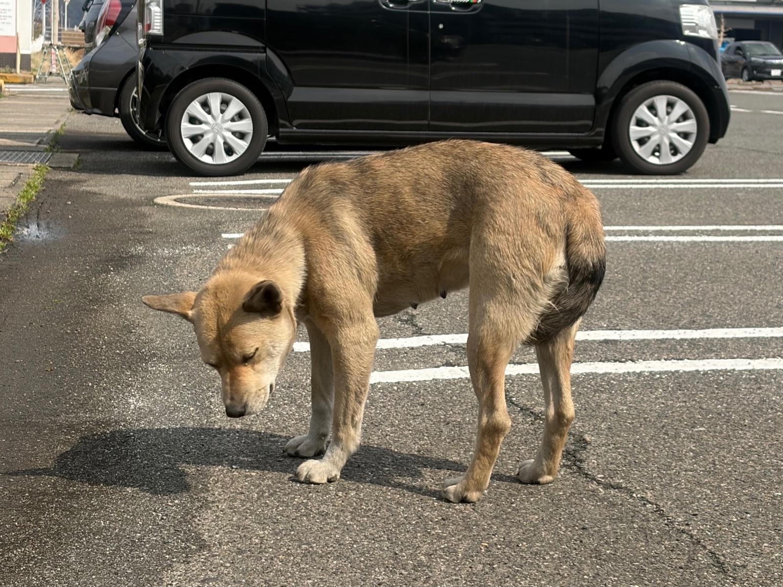 警戒心はあるものの落ち着いていて、車で近づきましたが窓越しに顔をよく見ていて目を合わせてコミュニケーションがとれ、まるでこちらの気持ちがわかるかのようでした。人を見る目があり、話しかけると様子を見ながら近づいてきてくれたので、どこかで飼われていた子ではないかと思います。大きく綺麗な目でしっかりこちらをみて話も聞けますし、こちらの意図を理解できる様子でしたので、少しずつならして安心してもらおうとした矢先に自転車に乗った高校生らしき集団が通り、犬を見て騒いだため、逃げてしまい見失いました。