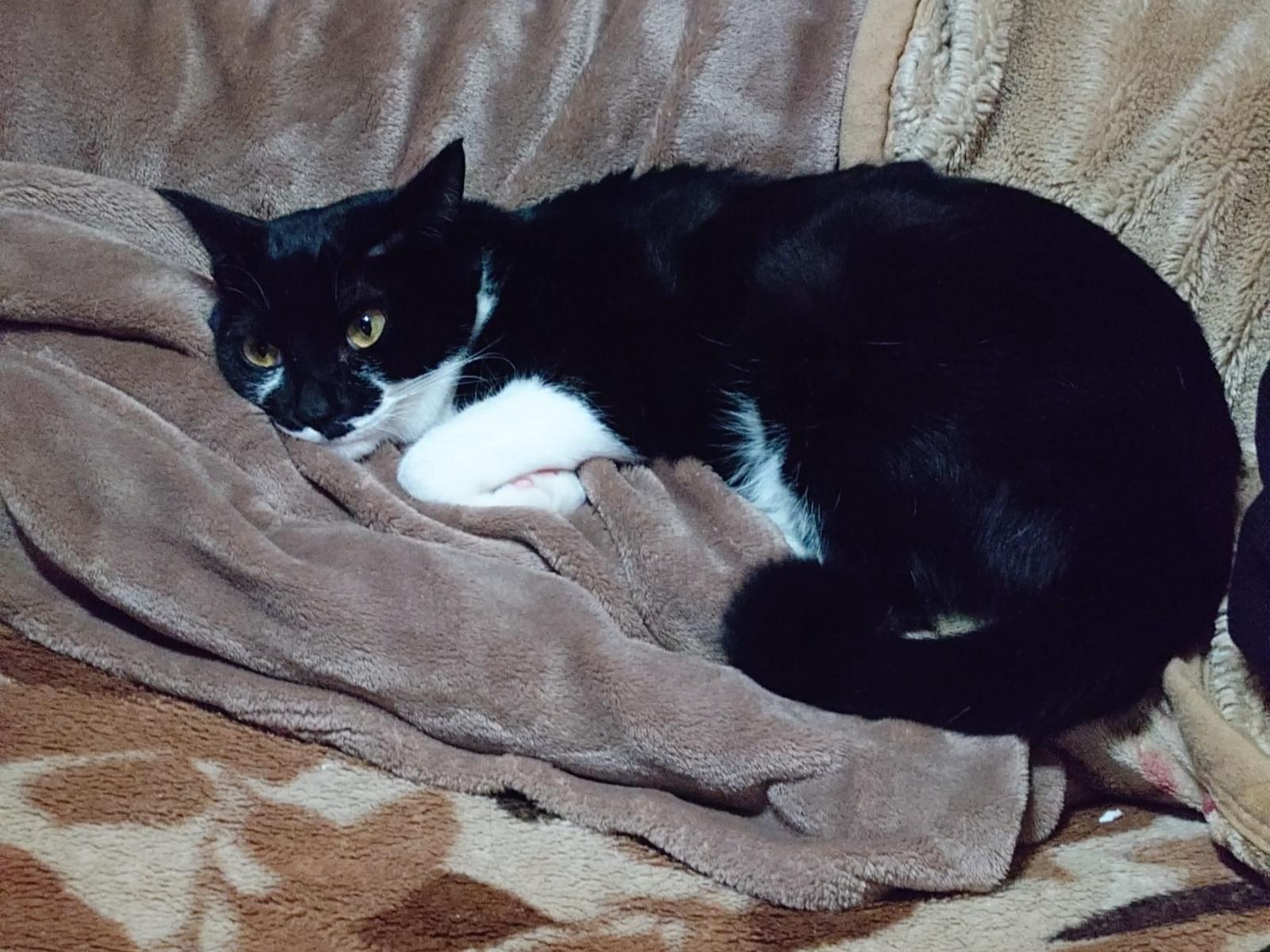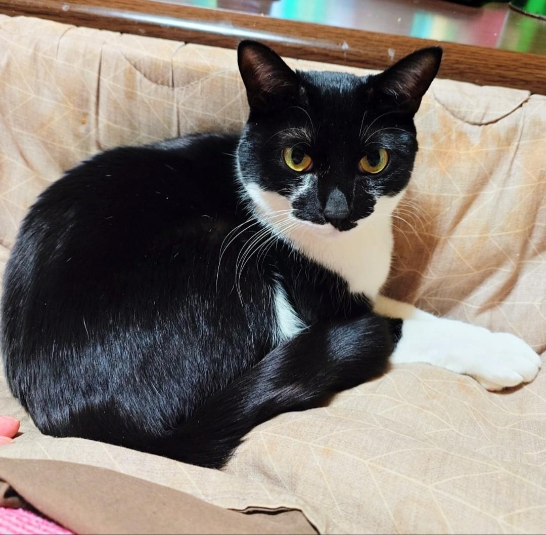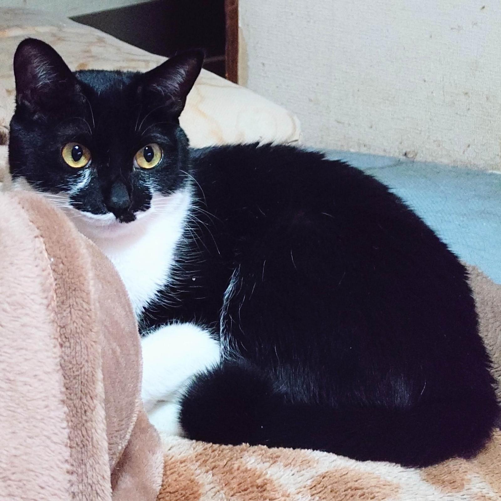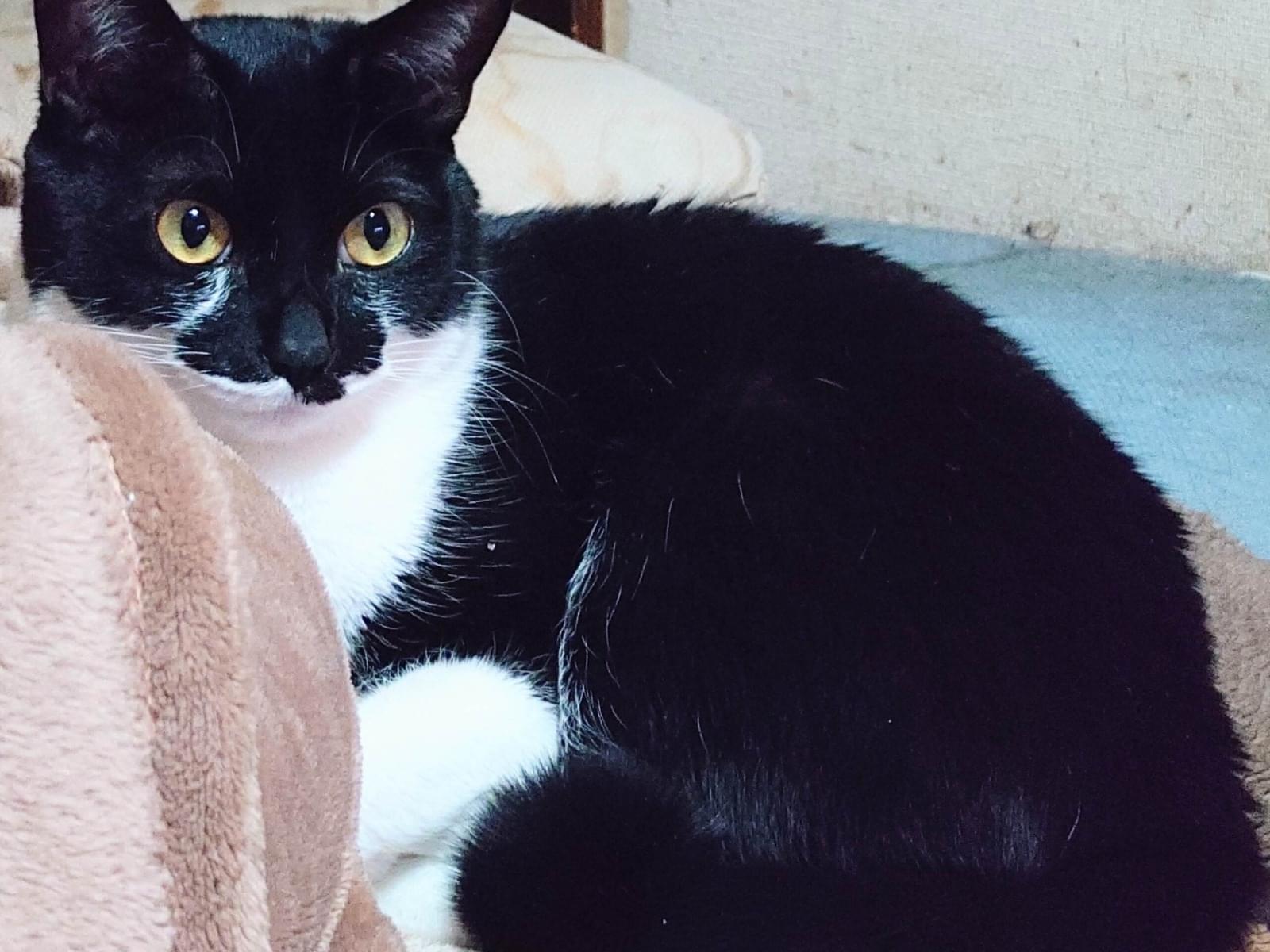 白黒のタキシード柄でカギしっぽの男の子を探しています