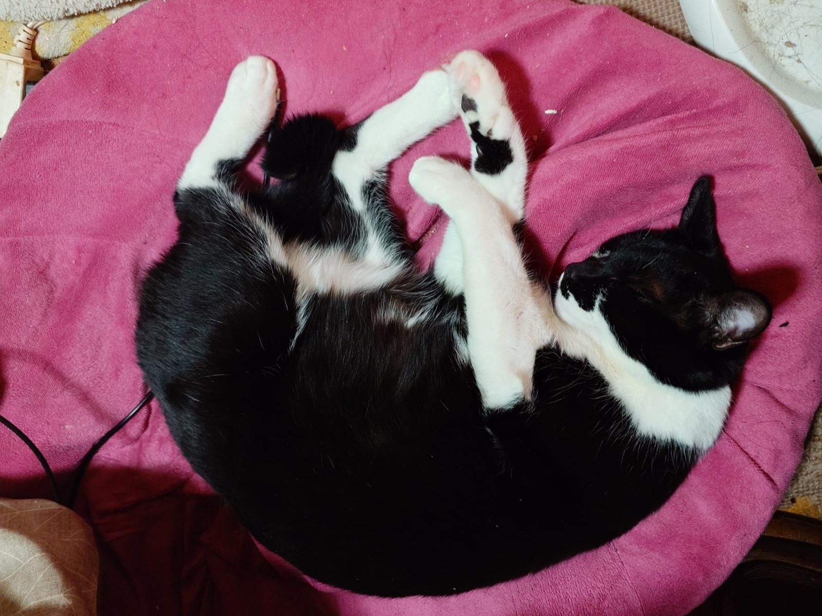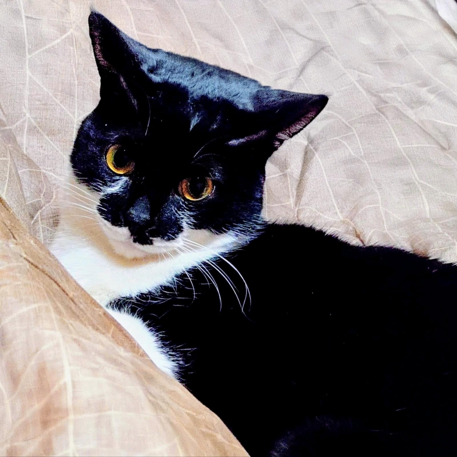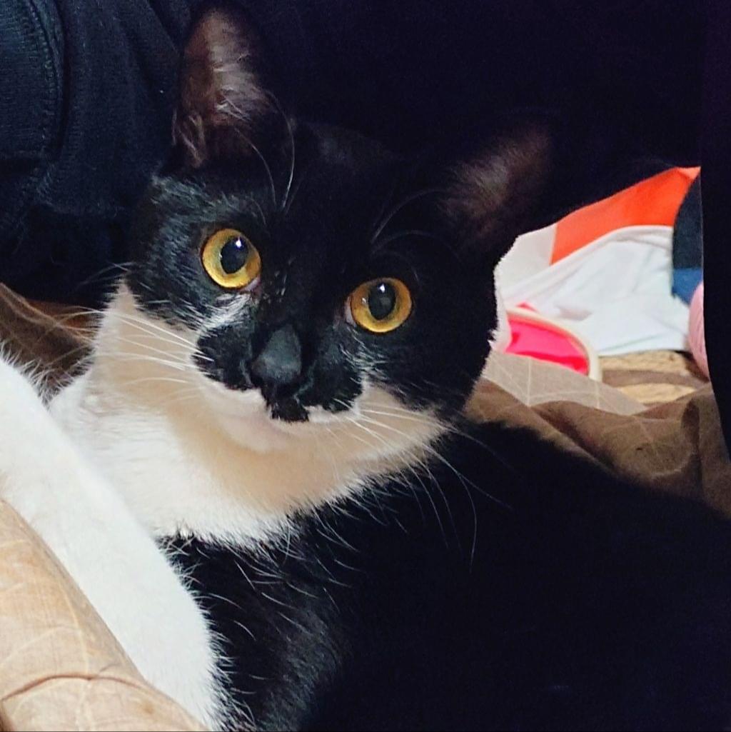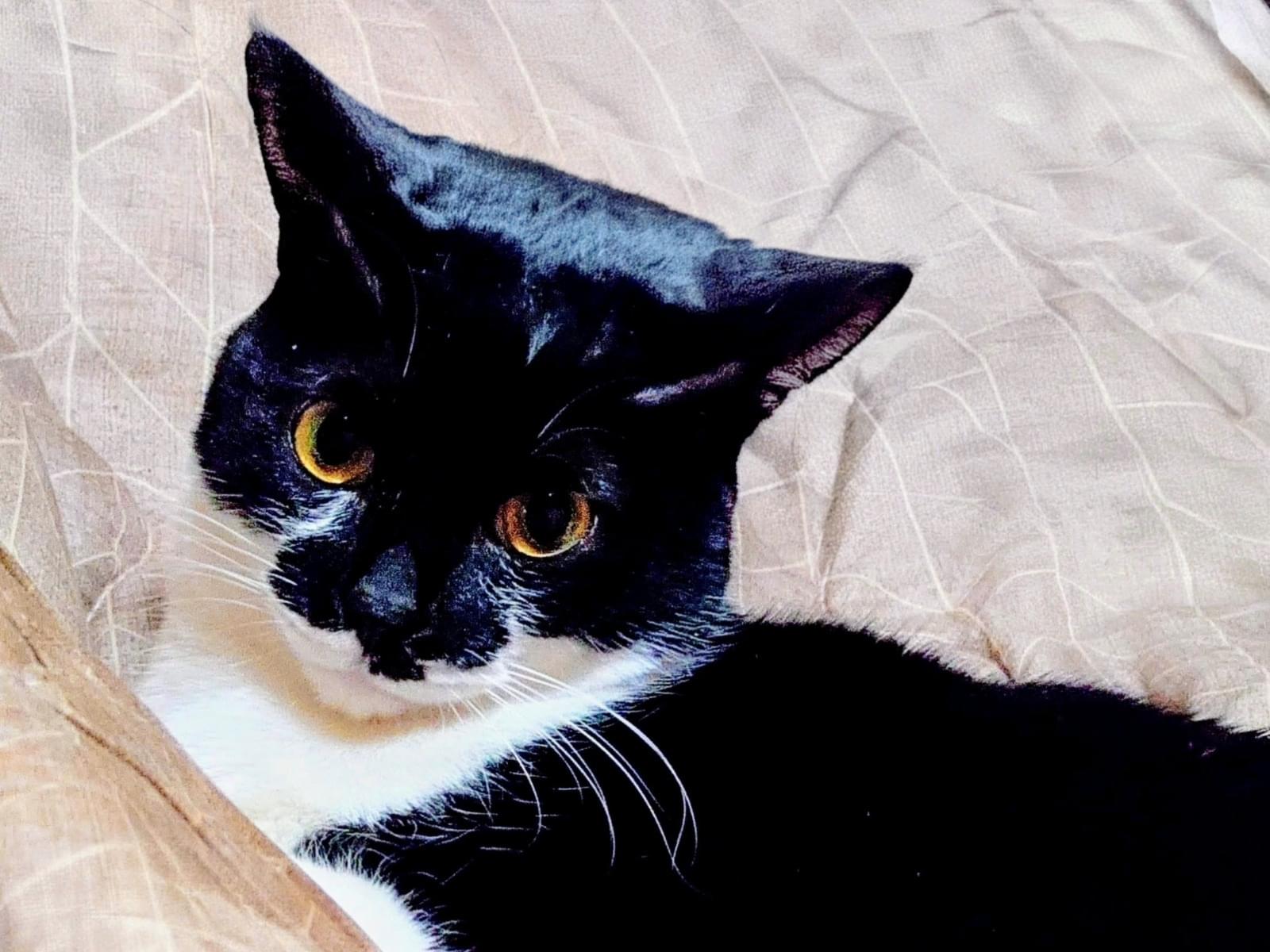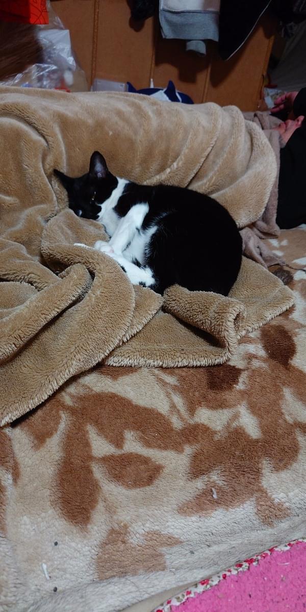 白黒のタキシード柄でカギしっぽの男の子を探しています