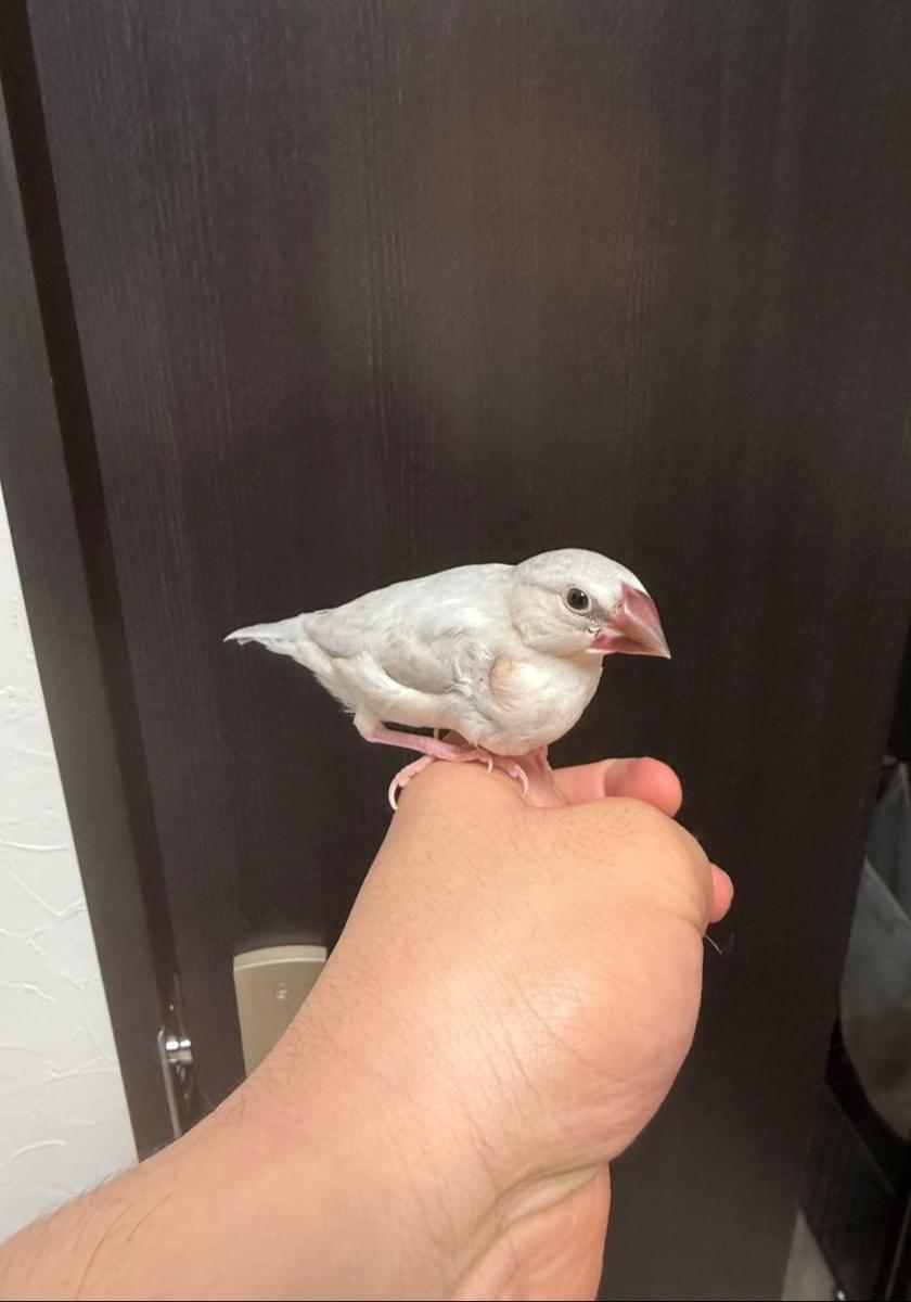 シルバー文鳥の若鳥です。若鳥なので今のところまだ性別は不明です。