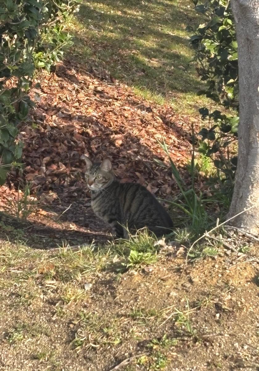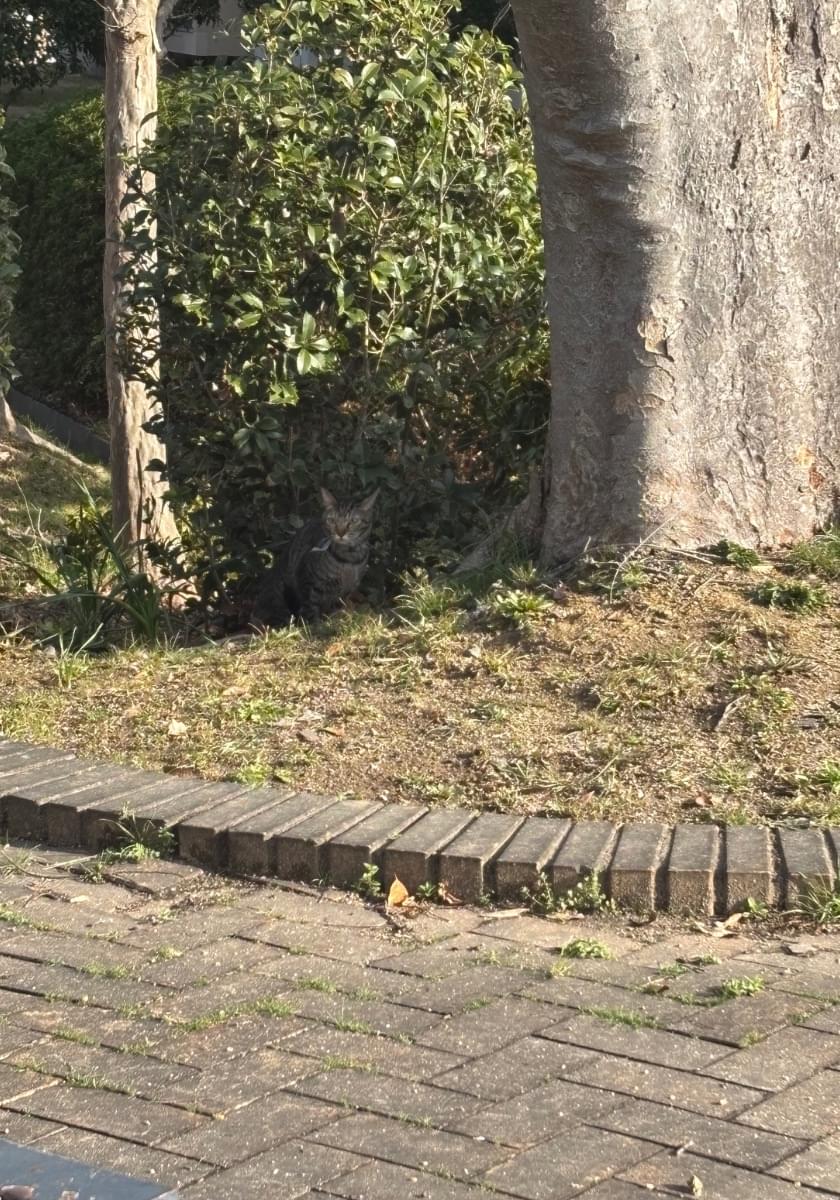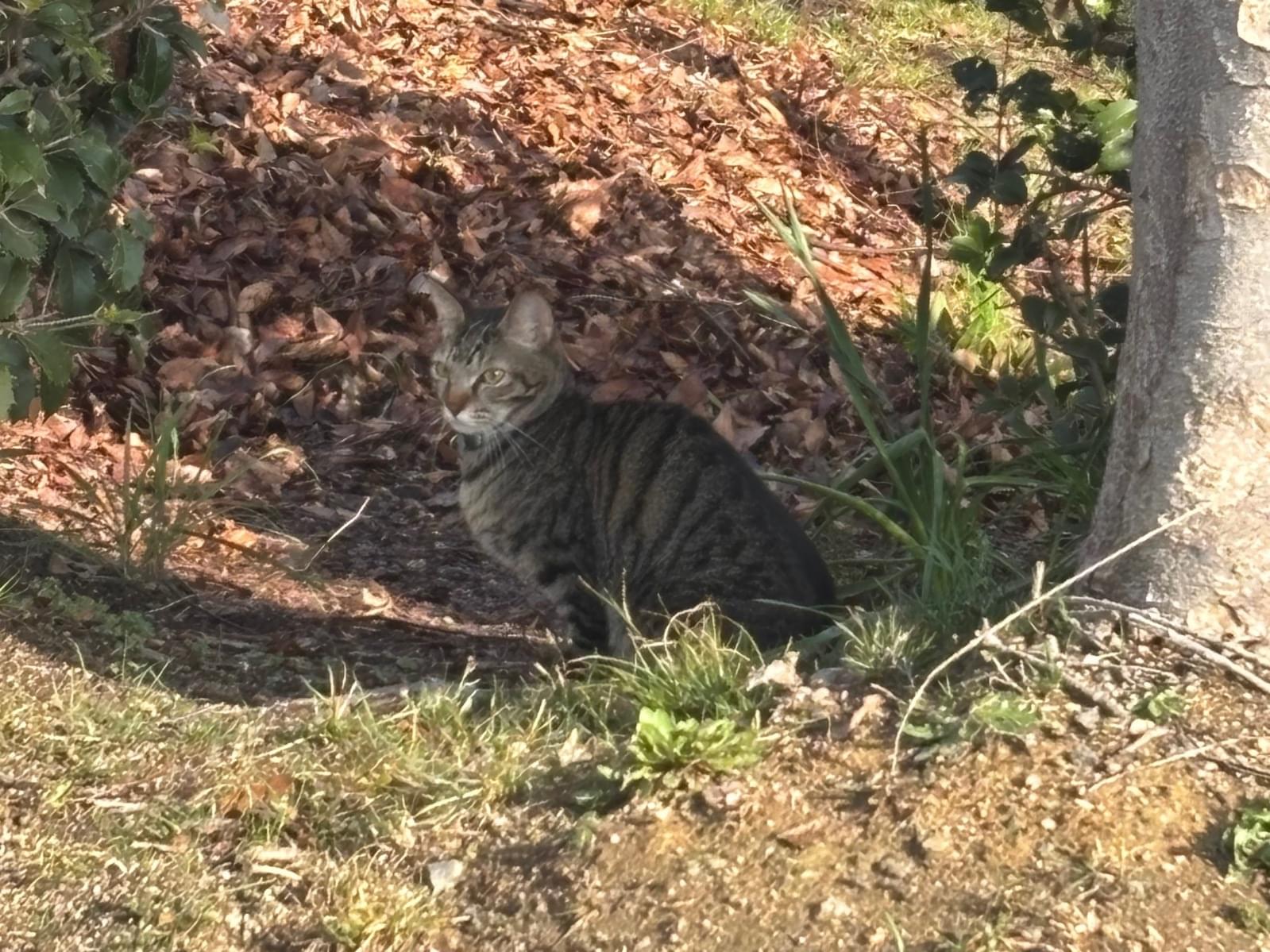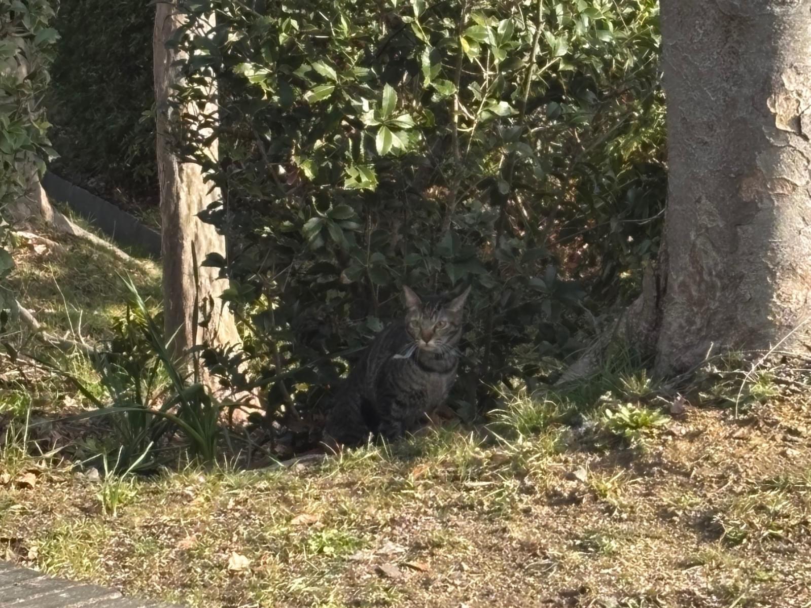 青い首輪をしたキジトラ猫