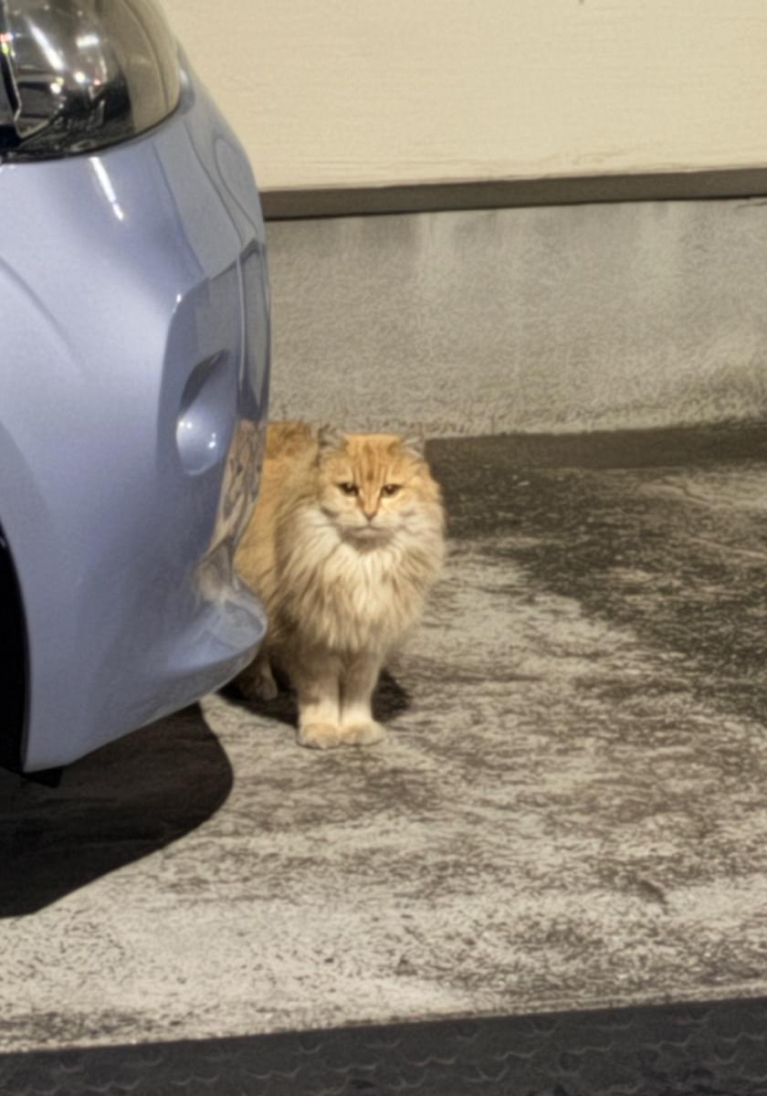 手が大きいので大型の猫ちゃんの可能性があります。この辺りで見ない子で、かつ長毛の小柄な(仔猫だと思われる)猫だったので、野良ではないように見受けられ、掲載に至りました。