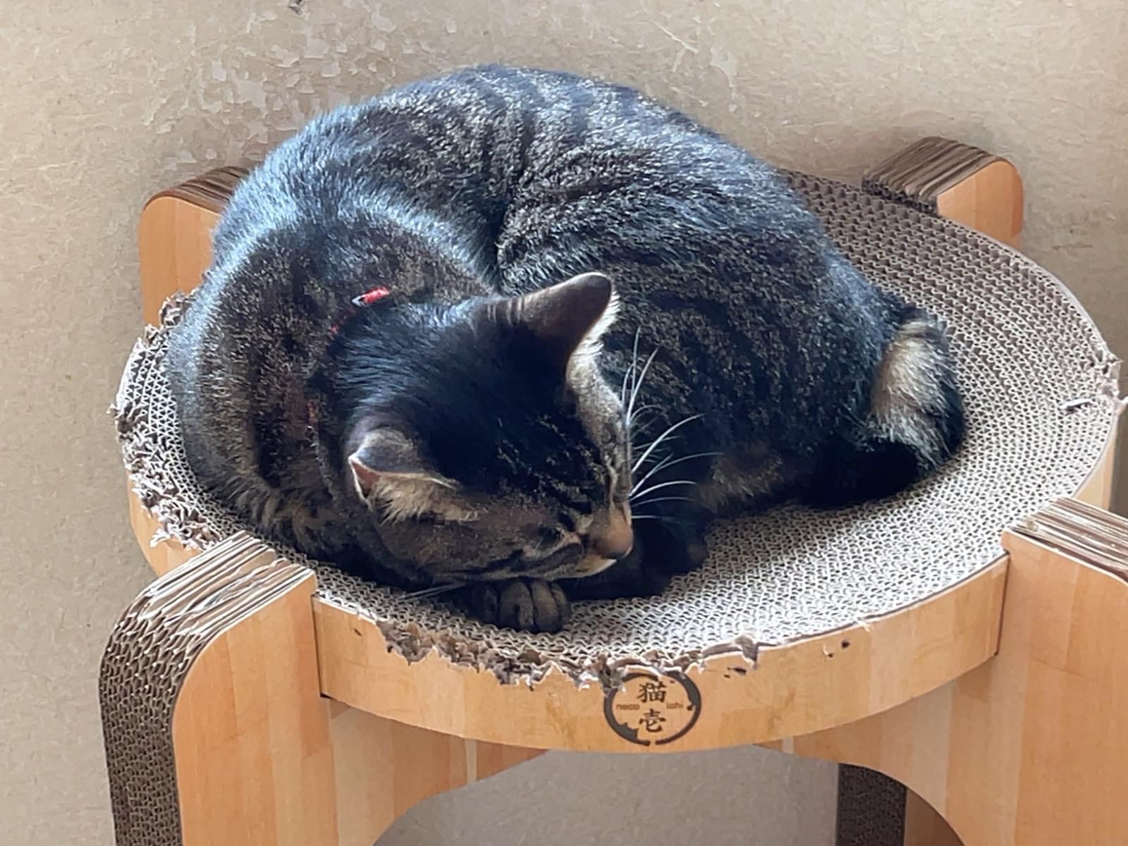 赤色の首輪をつけていて、小柄な猫です。声は高く、性格は少し臆病で知らない人が近づくと逃げてしまうことが多いです。