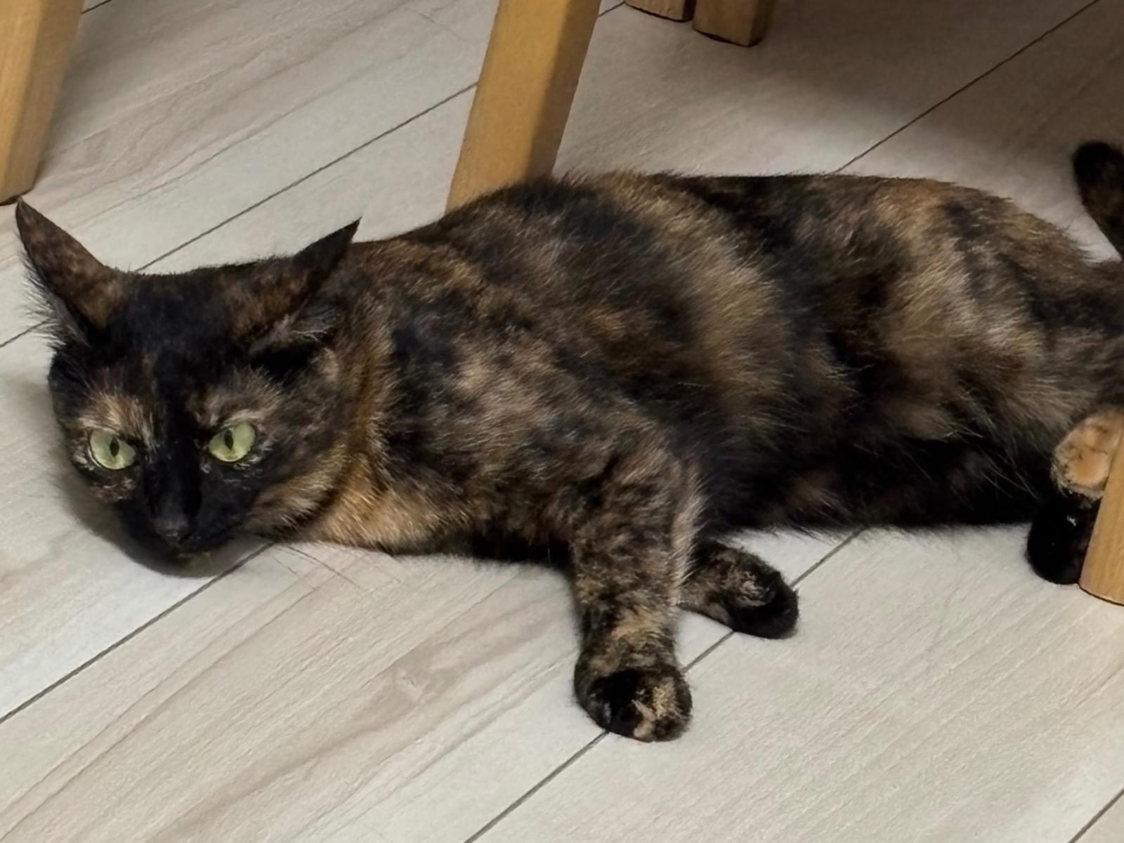 両目の上が少し色素の薄いさび猫を探しています。