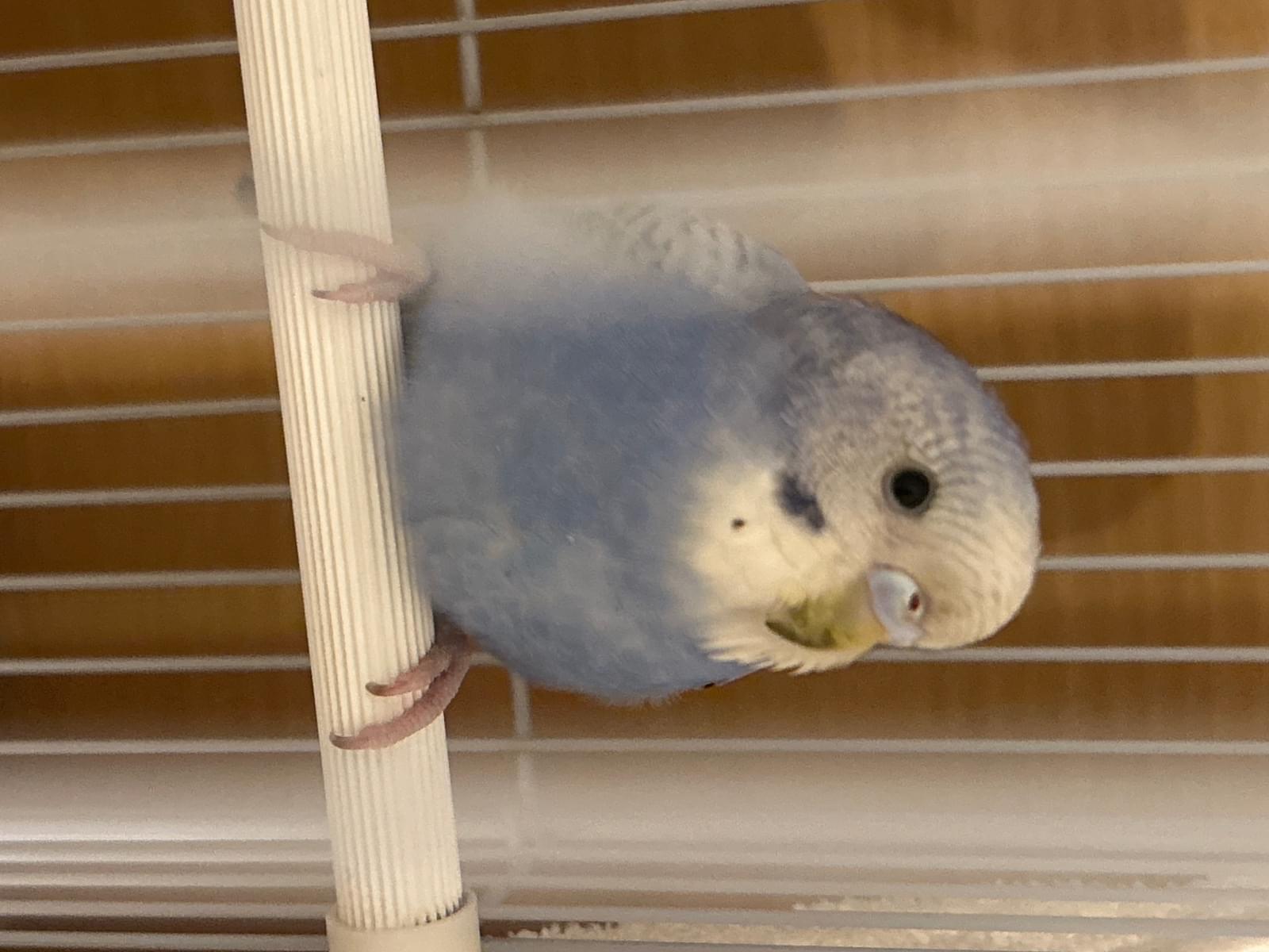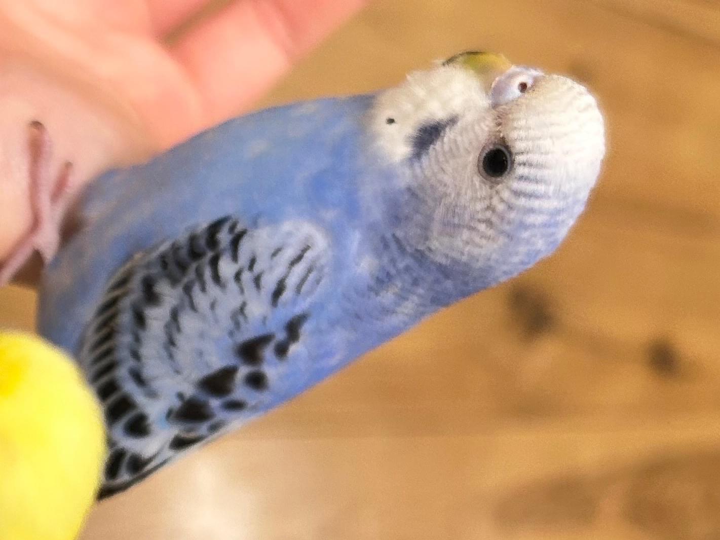 体は小さめで目は大きく、くちばしが青く鼻は少しピンクです。