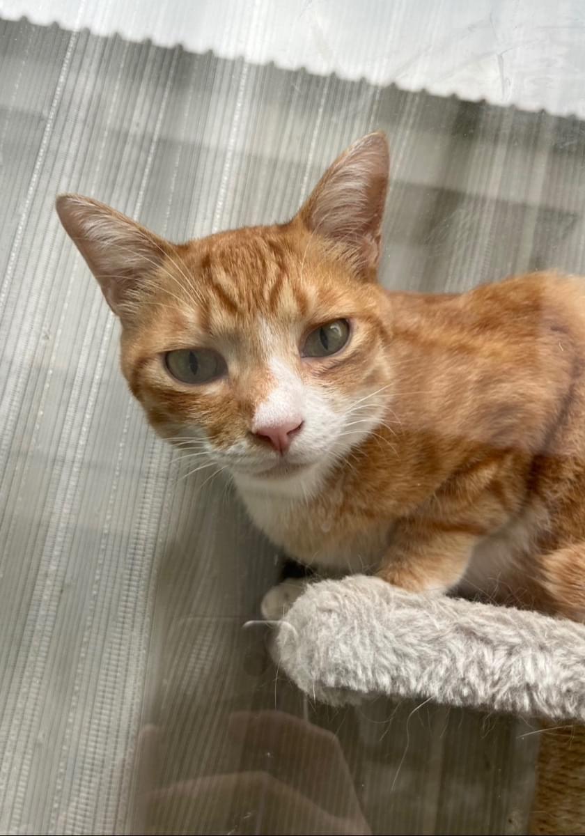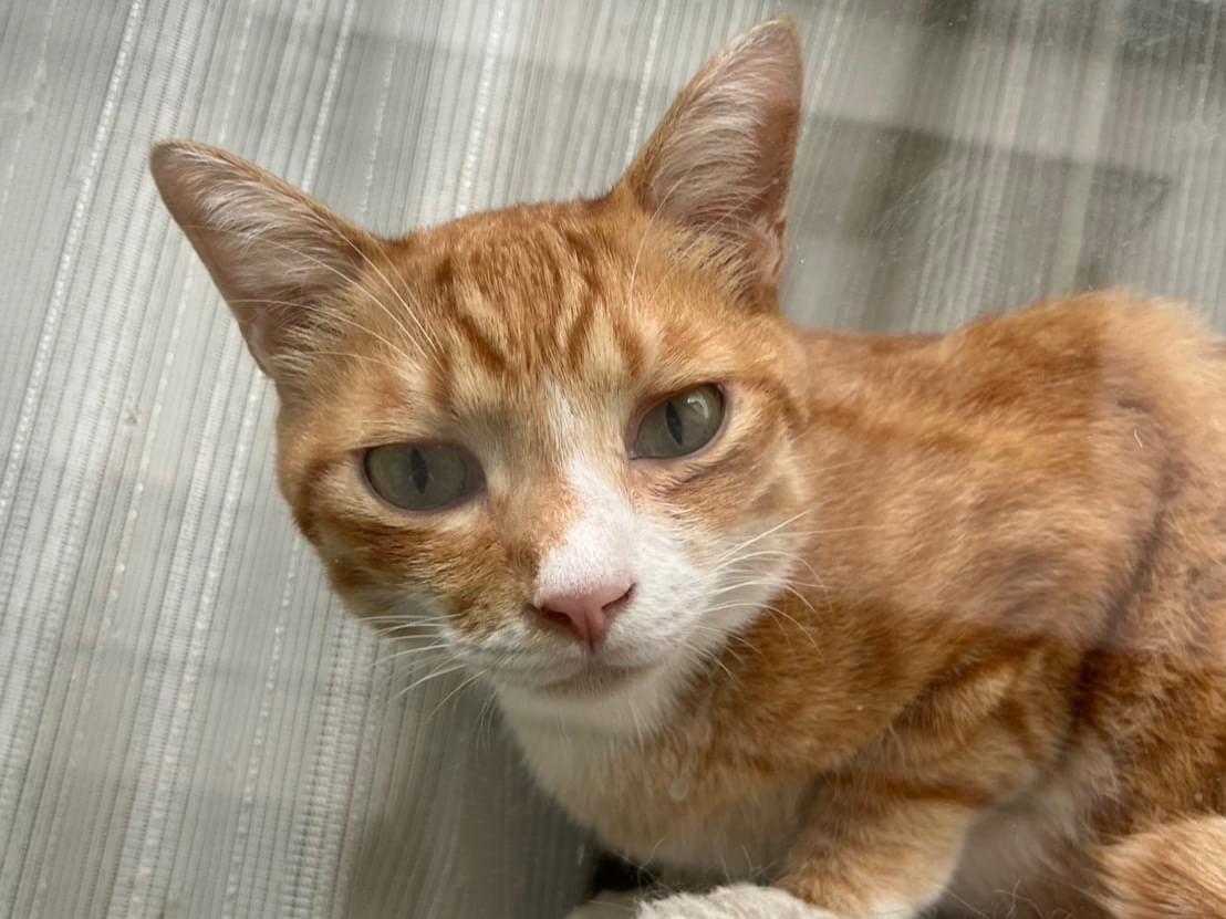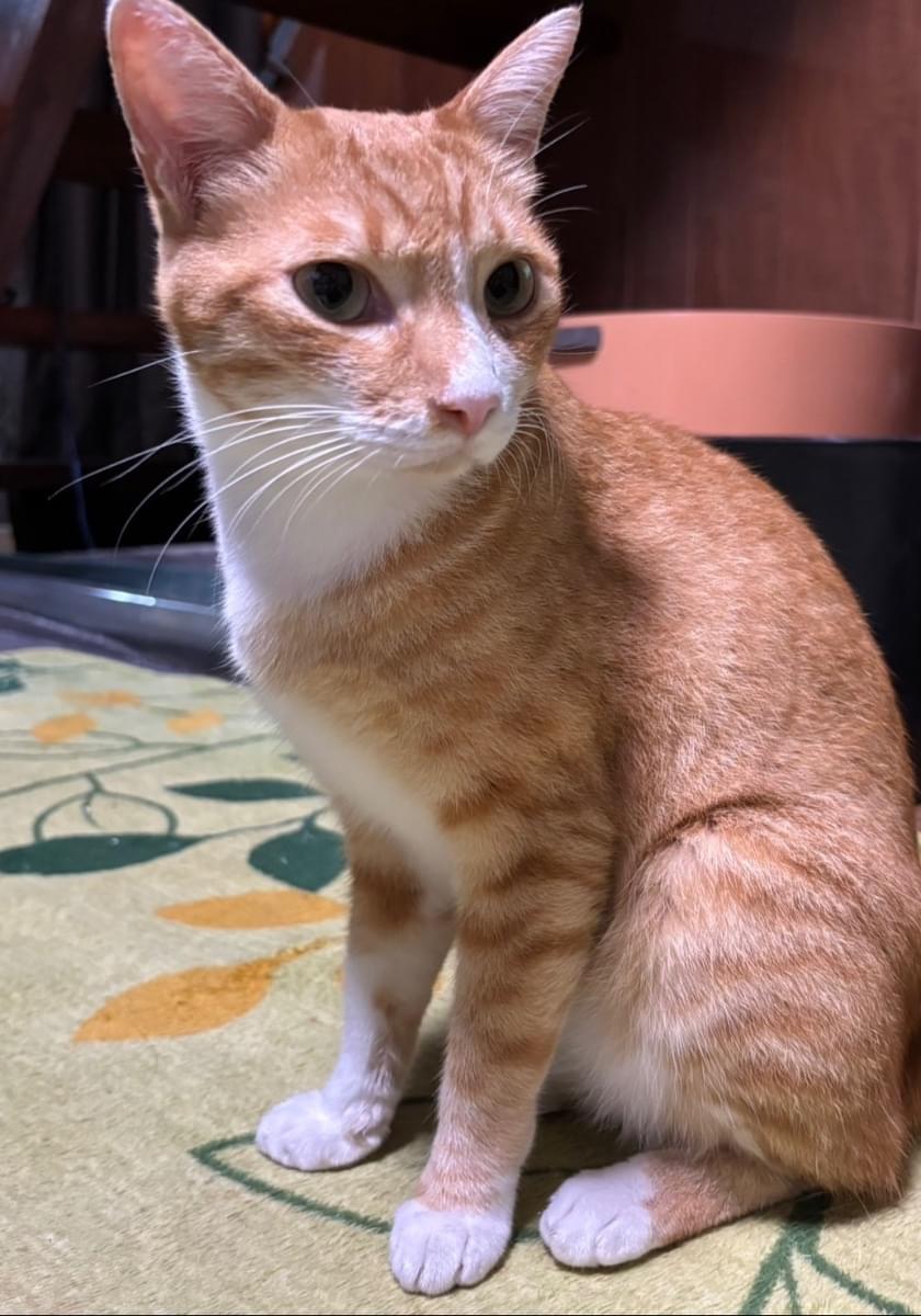 茶トラ猫、細身、首輪なし、去勢済オス猫です