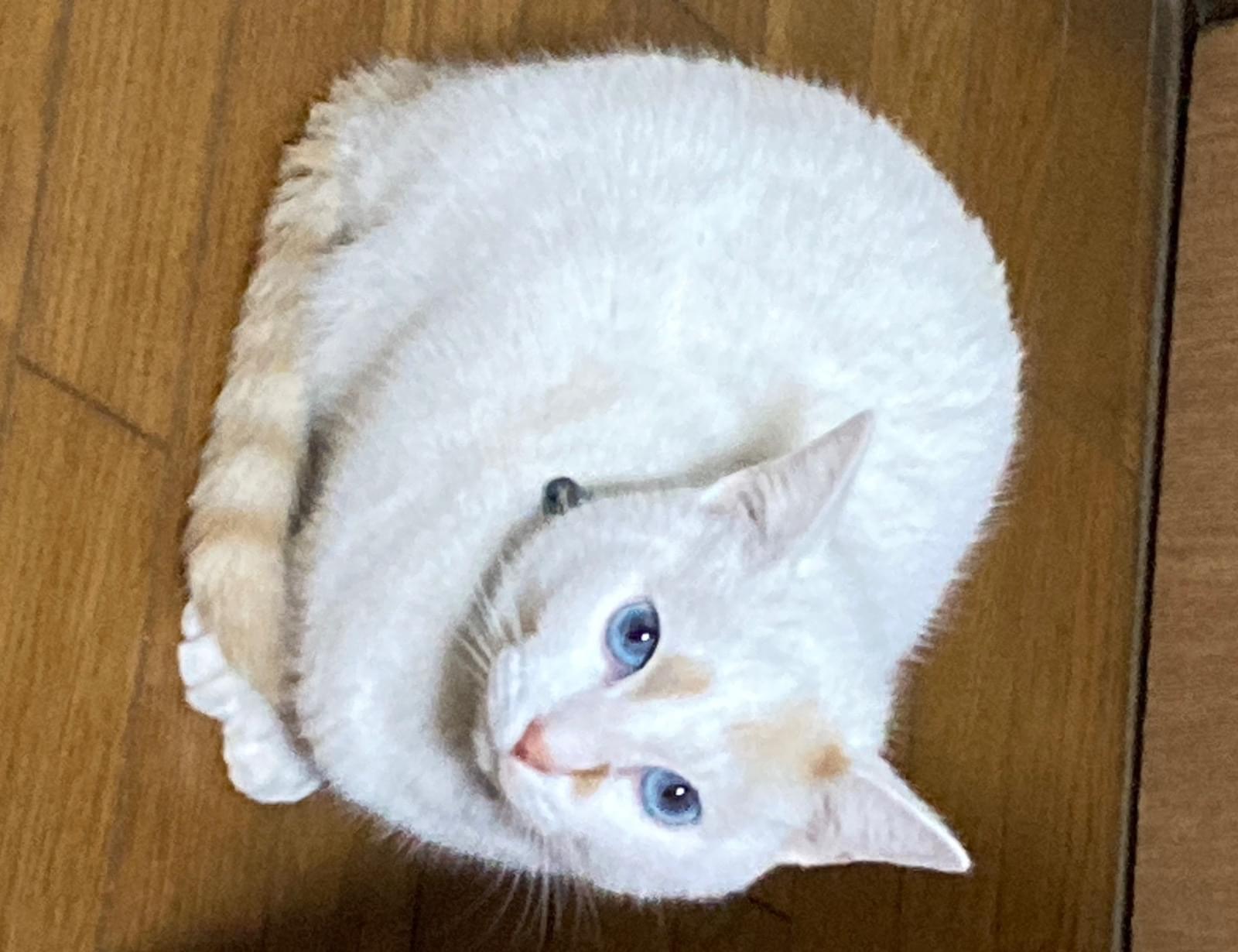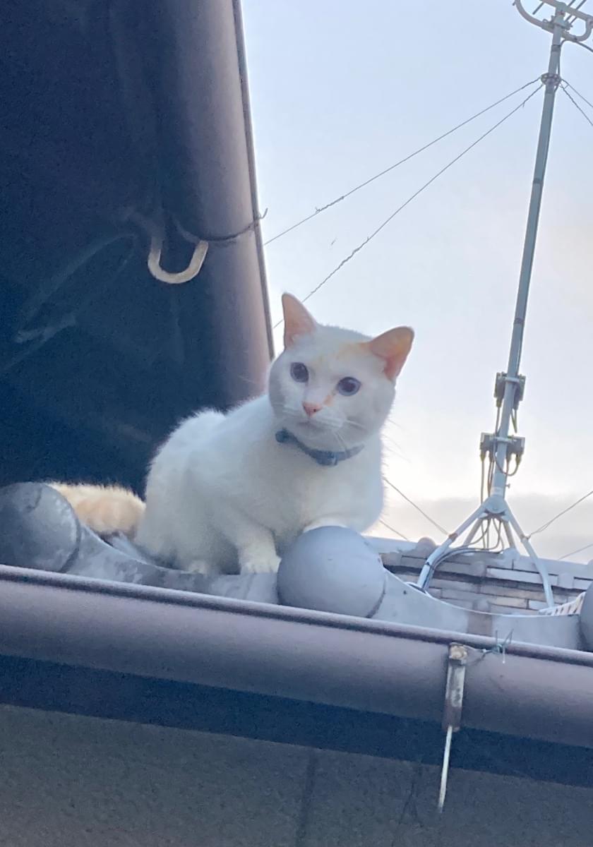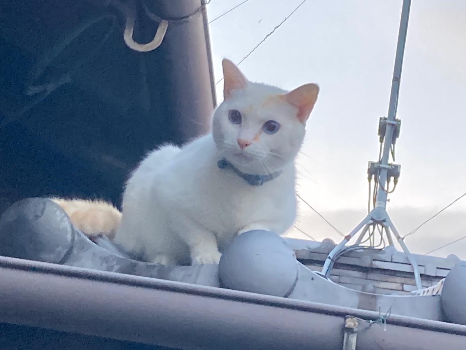 2026.3.15(日)の午前中からいなくなりました。白色で尻尾が茶色の縞模様、額と眉間と鼻筋に茶色のブチがあります。瞳は青色です。