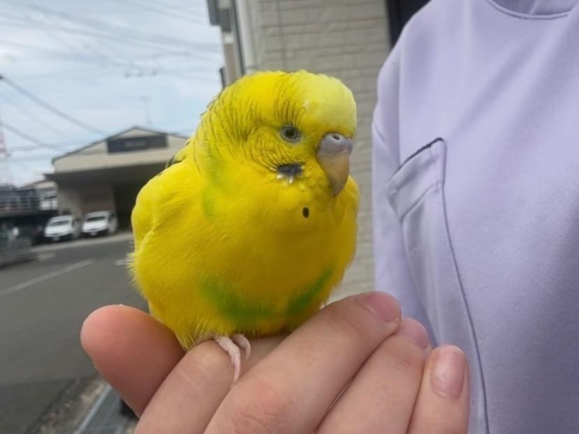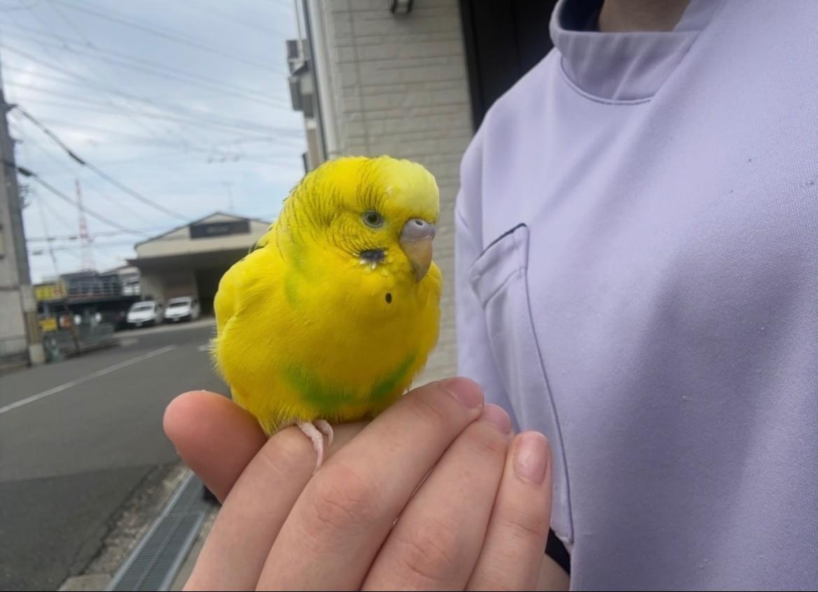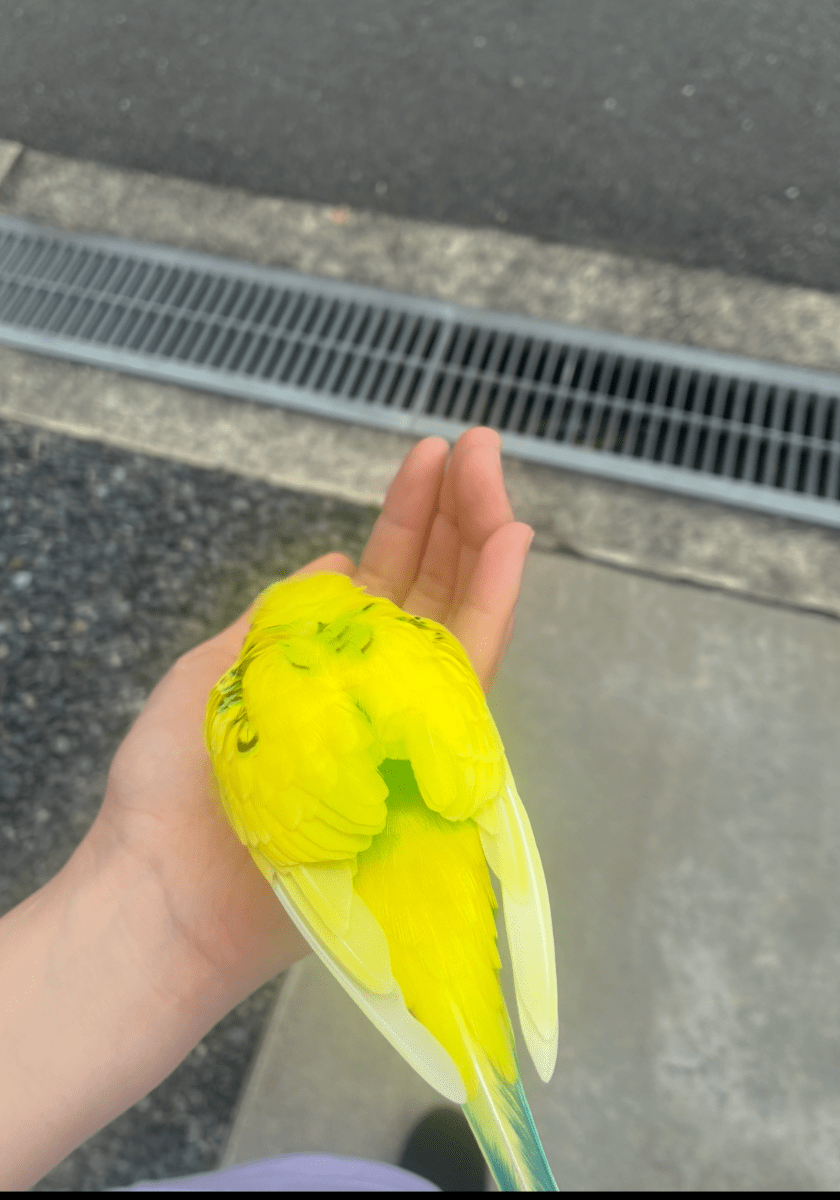 こちらから近づかなくても、インコの方から寄ってきて、手を差し出すと乗ってきました。その後は肩の方まで上がってくるなどしたりして、だいぶ人馴れしているようなので迷いインコだと思い門真警察に届けました!