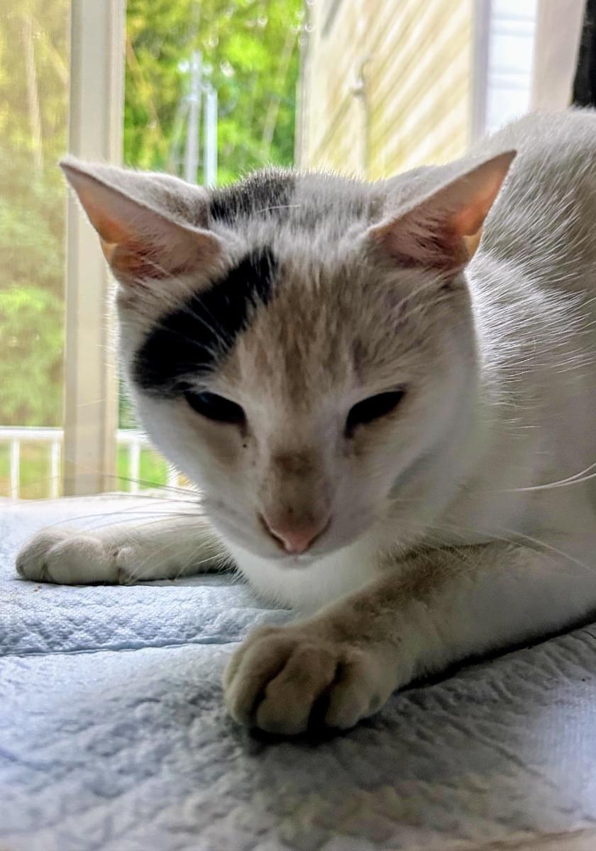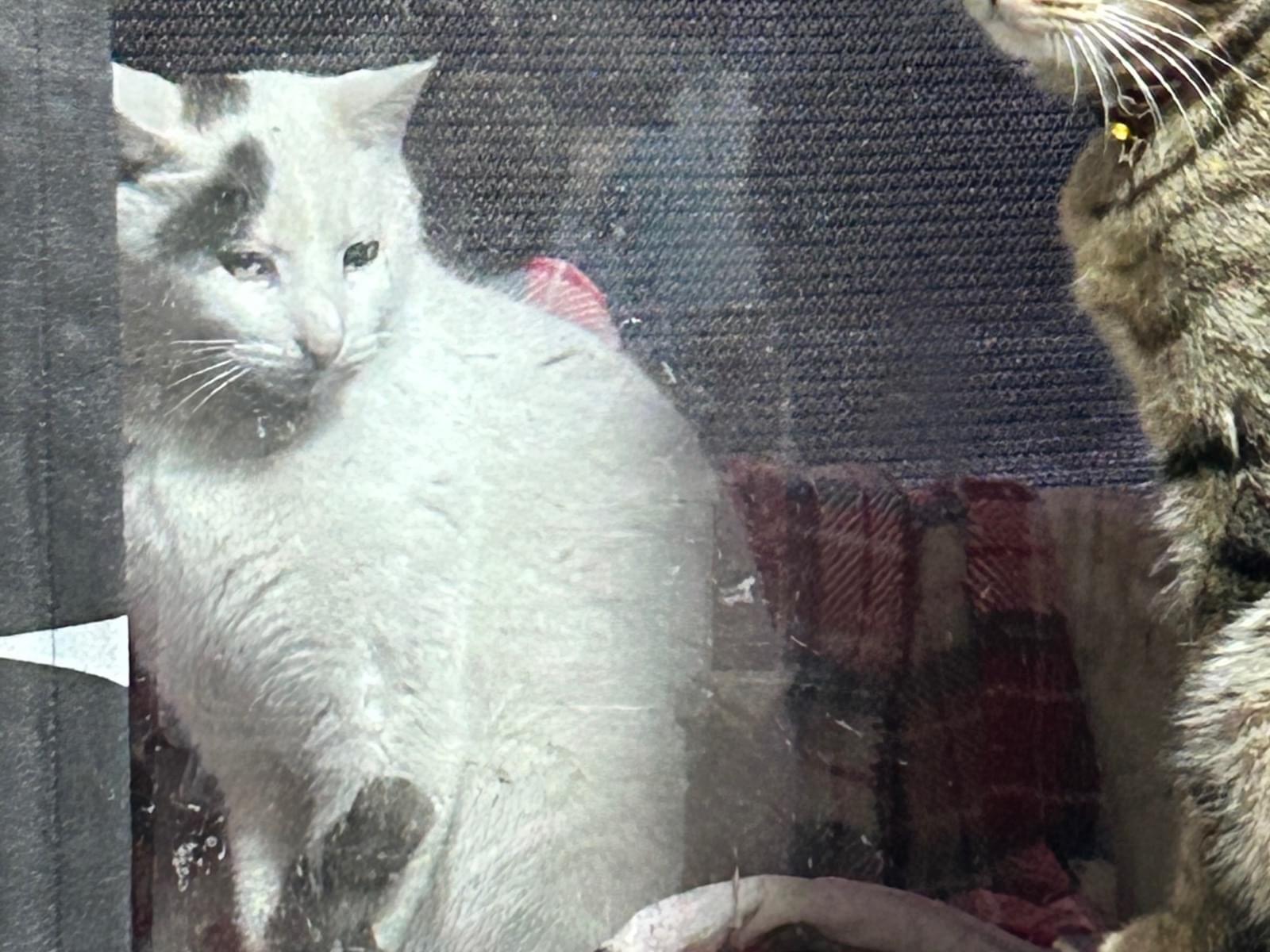 ほぼ真っ白な臆病な雄白猫です