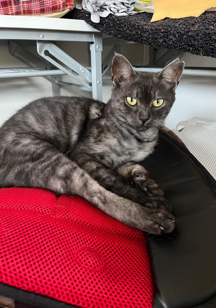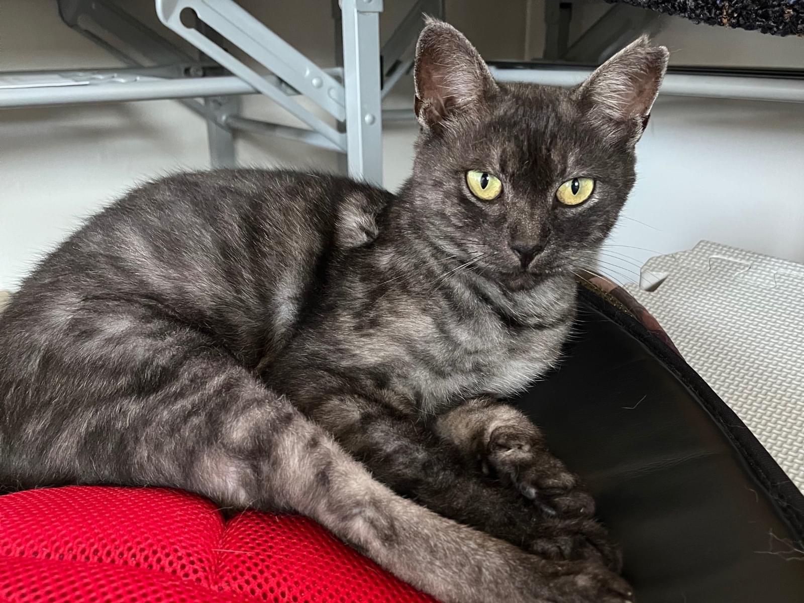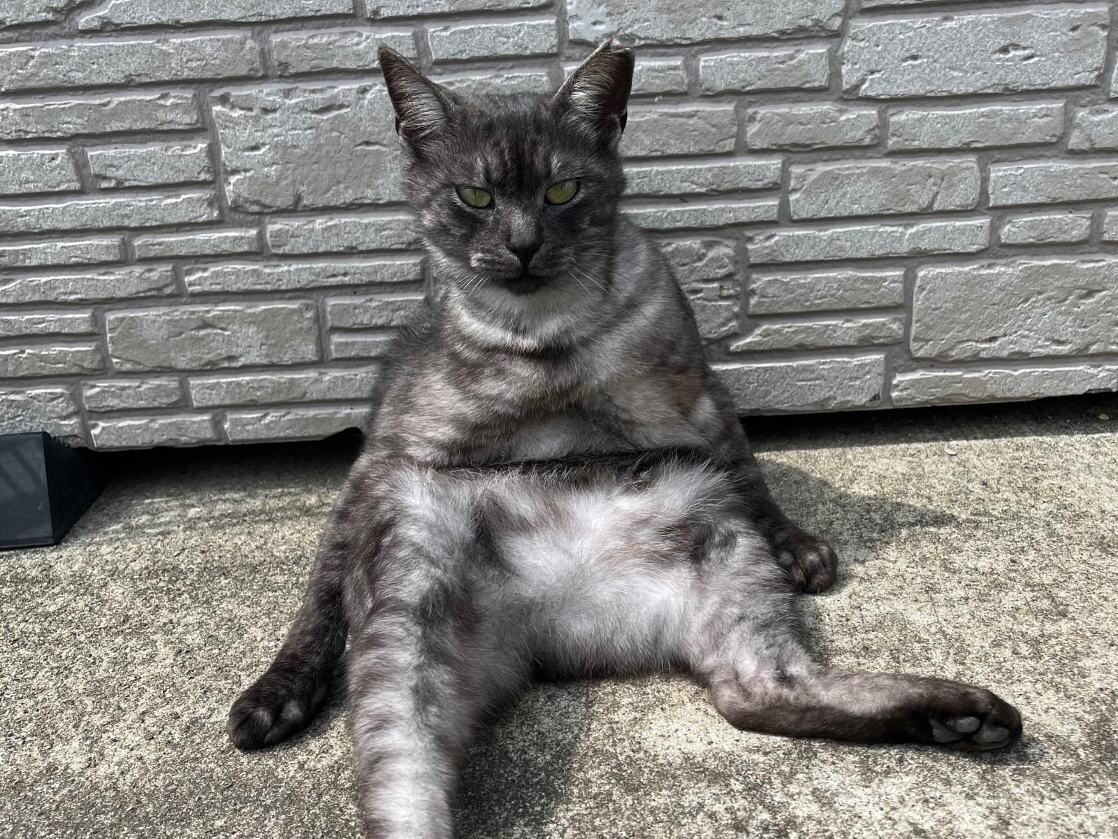 濃いグレー系で薄く模様が入っている猫を探しています