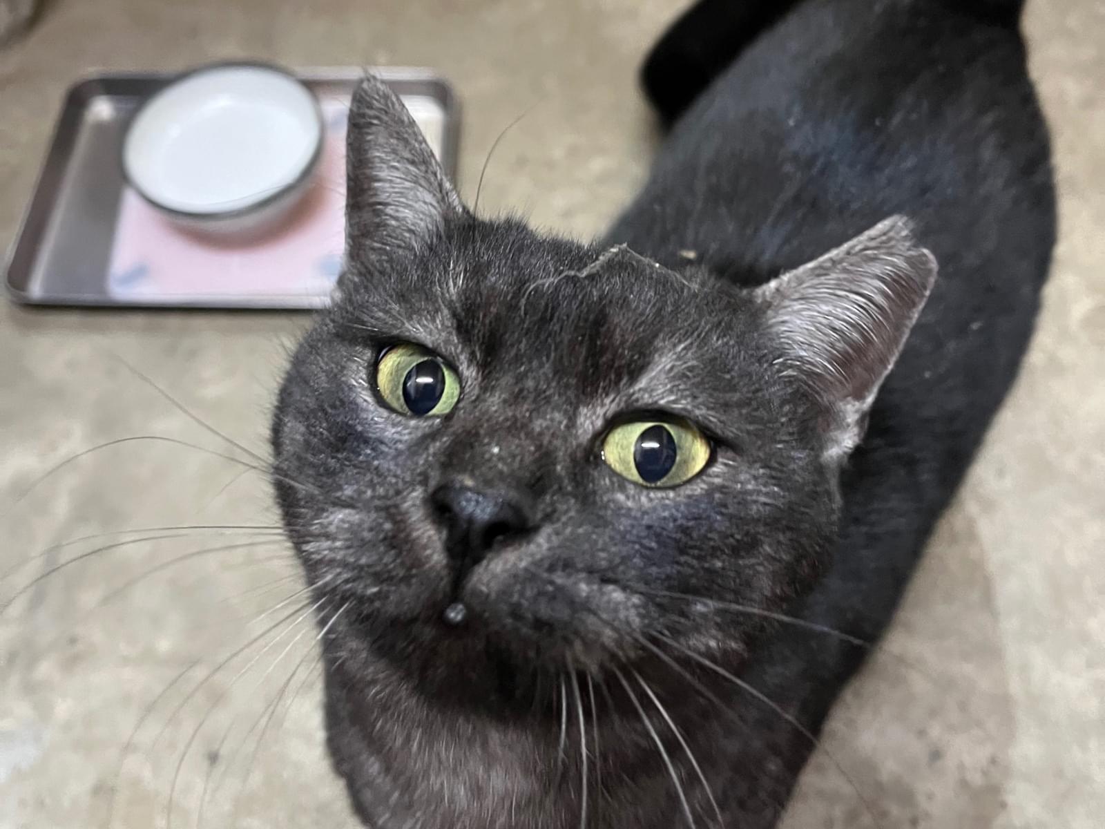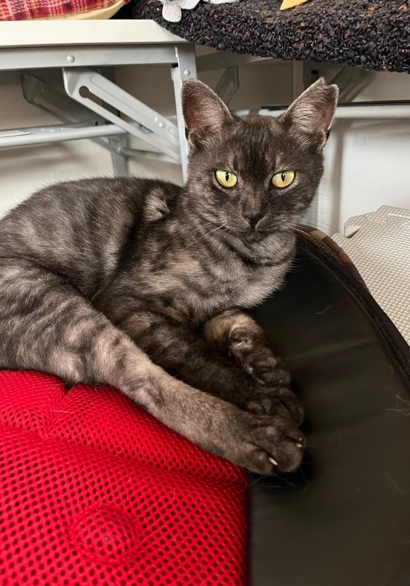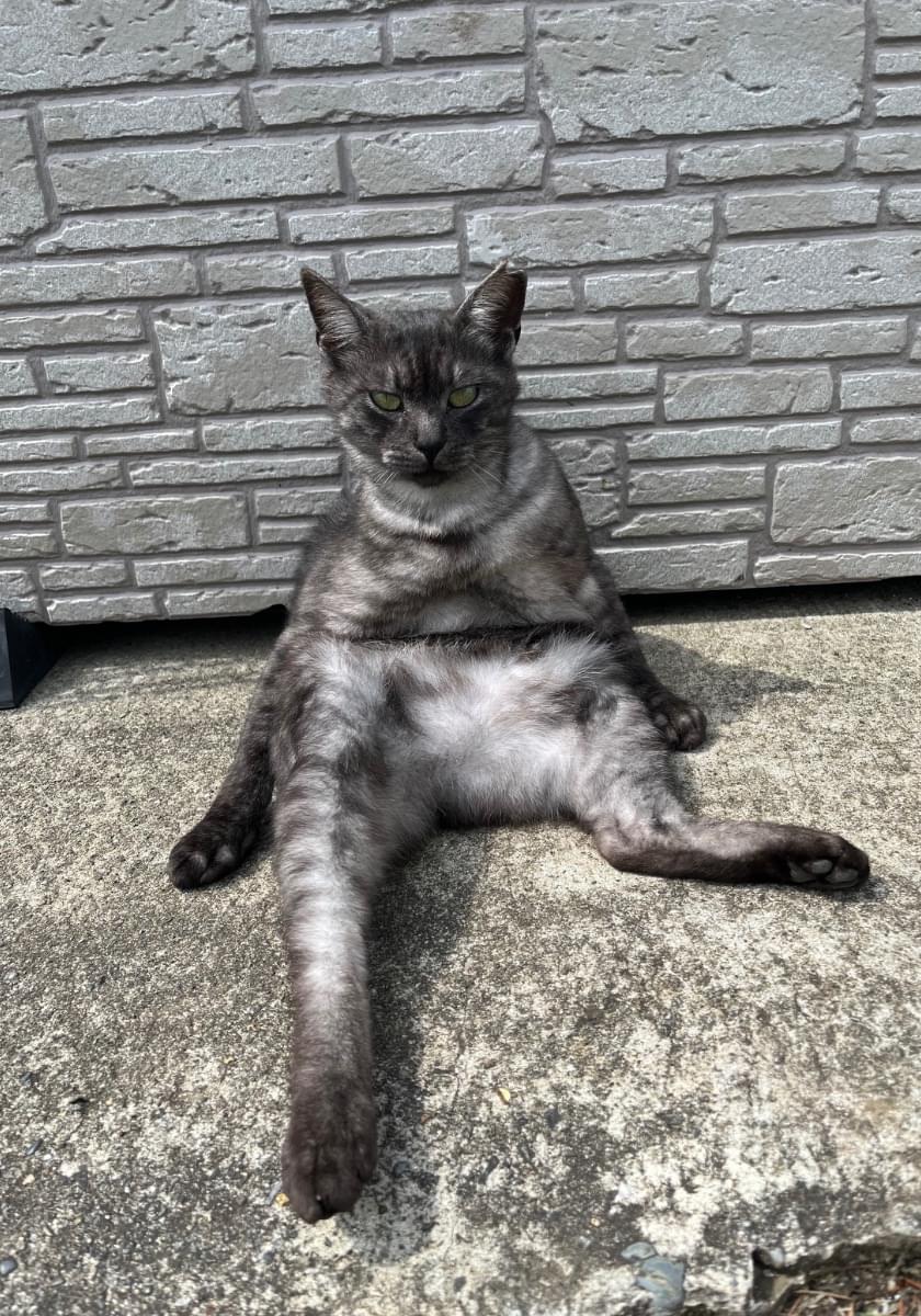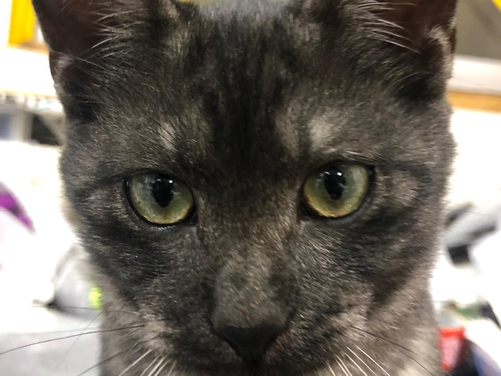 濃いグレー系で薄く模様が入っている猫を探しています