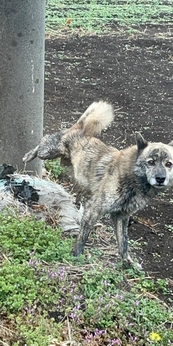 泥で汚れていましたが恐らく薄い茶色の柴犬系だと思われます。