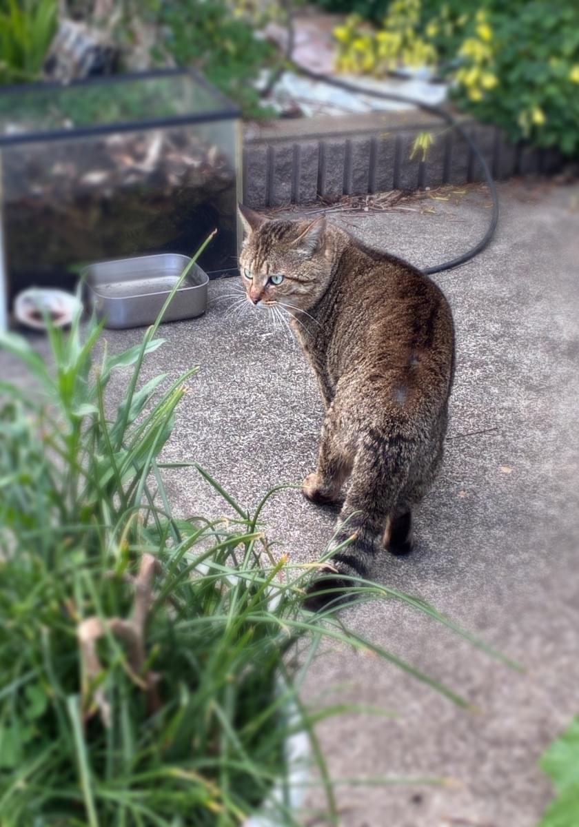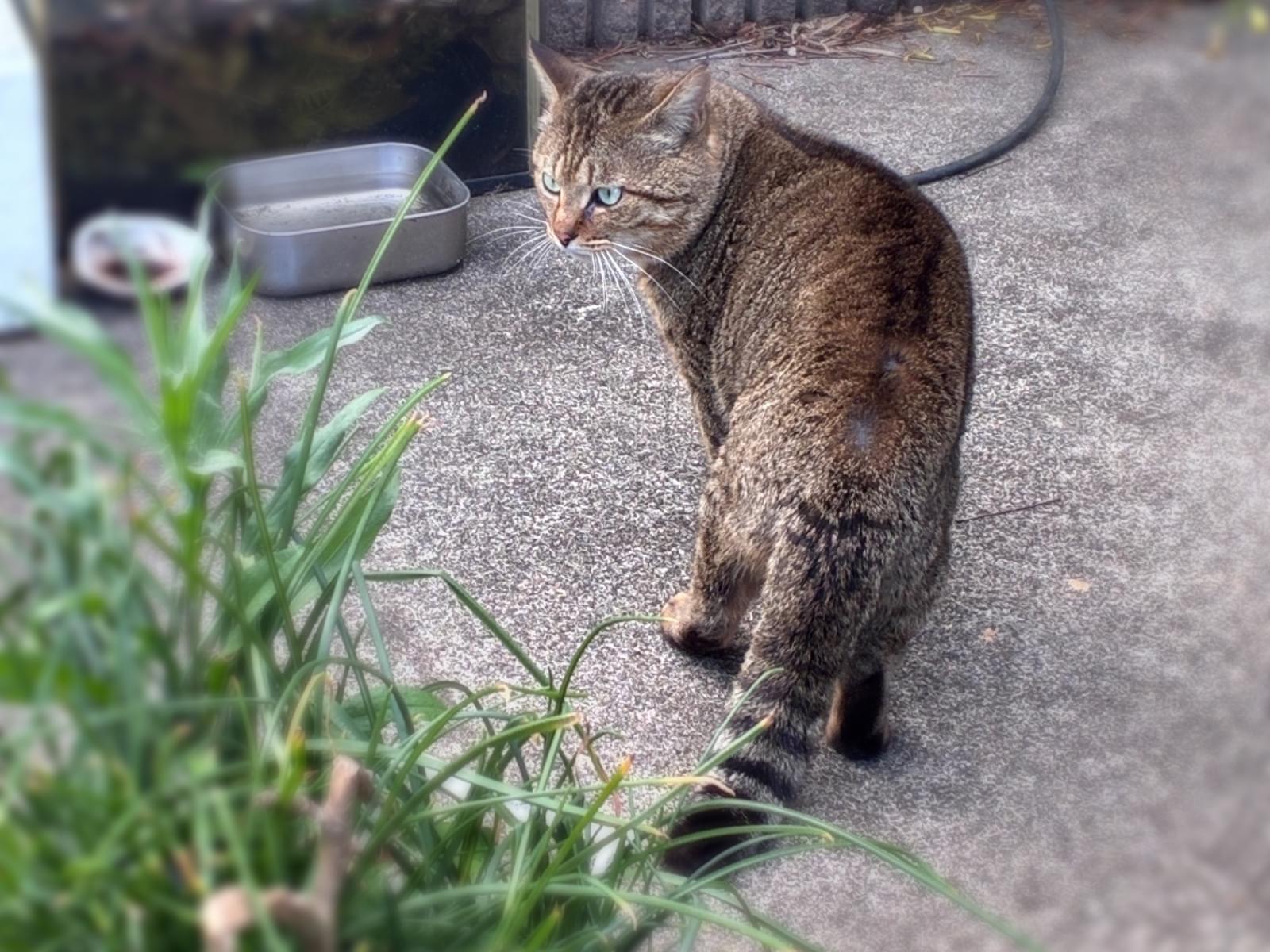 近づくと距離を取ってしまいますが、野良猫のように真っ先に逃げ出す様子はありませんでした。